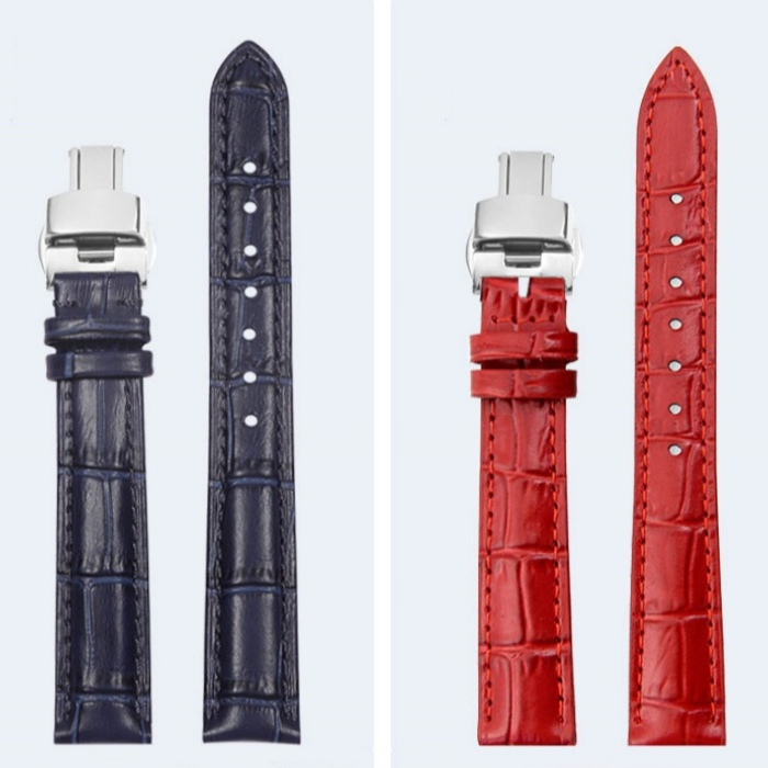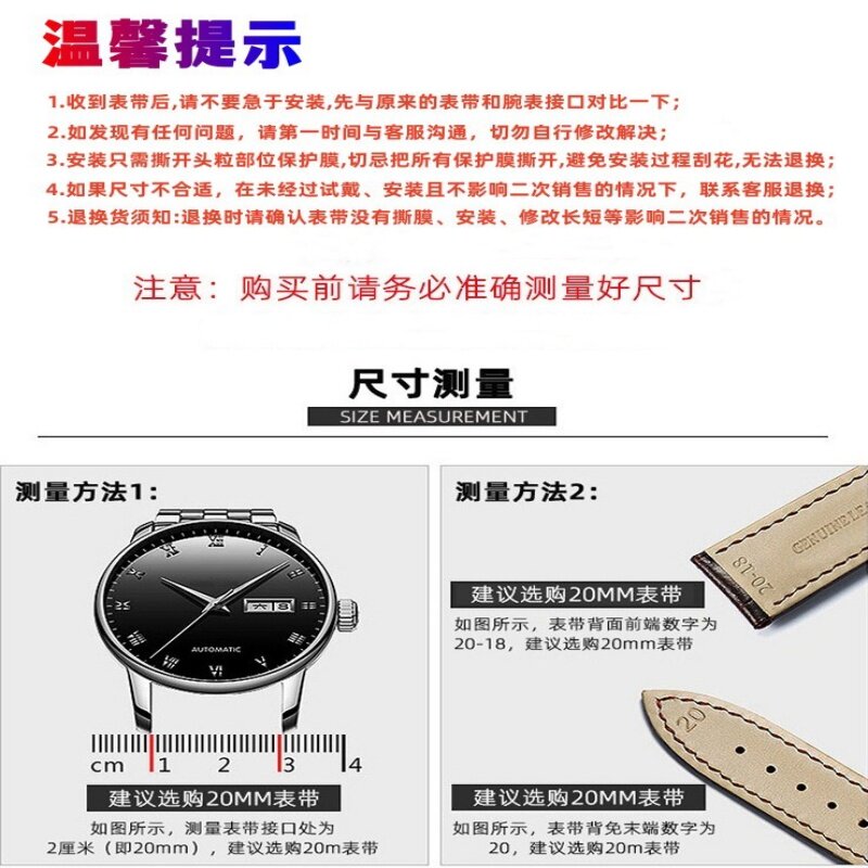 📚 时尚竹节纹真皮机械手表带女款头层牛皮通用皮表带男款手表表带