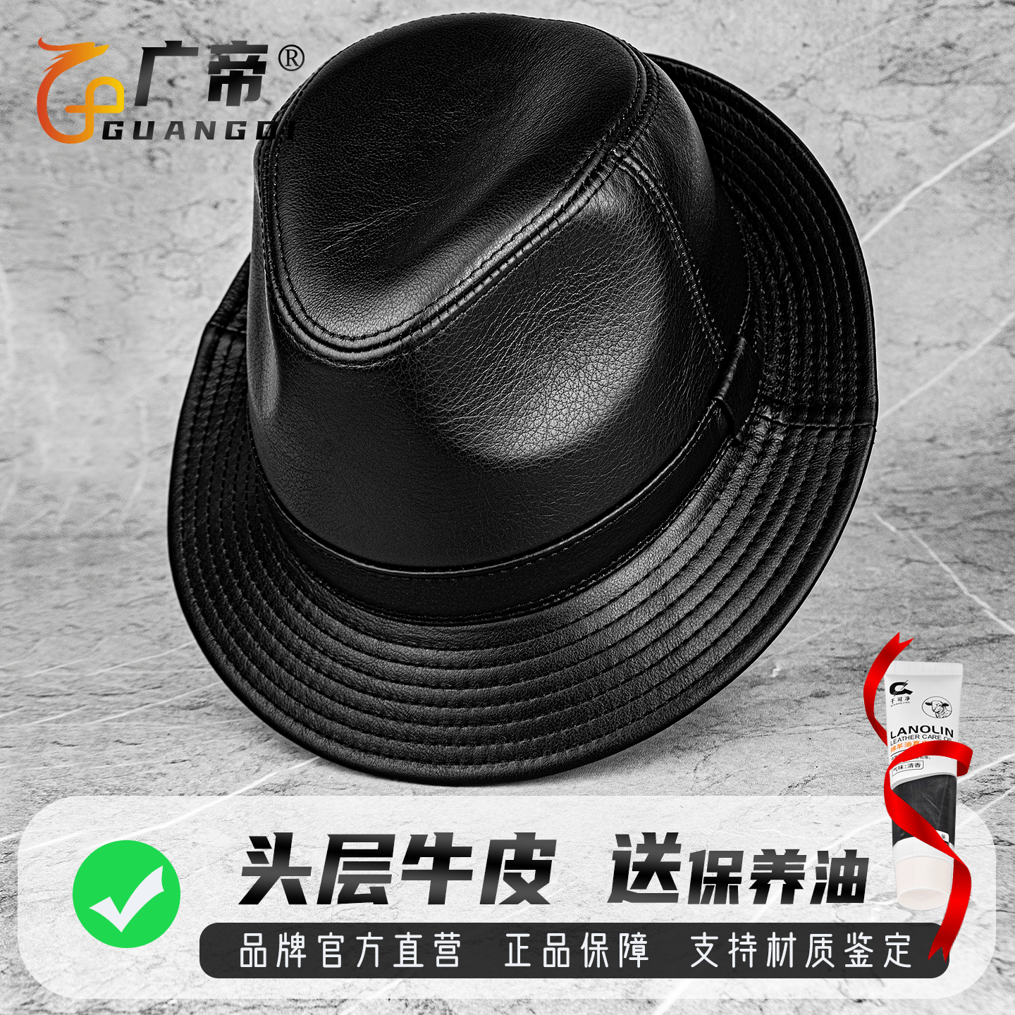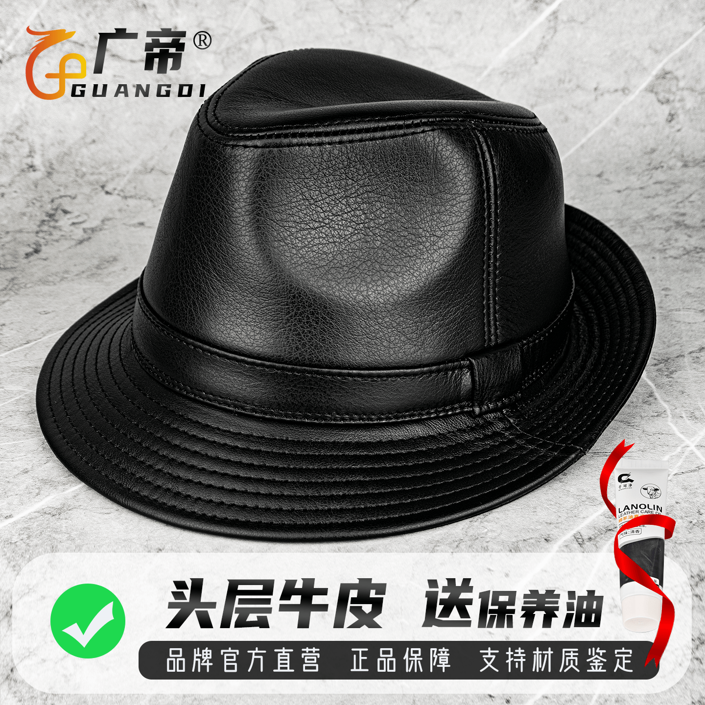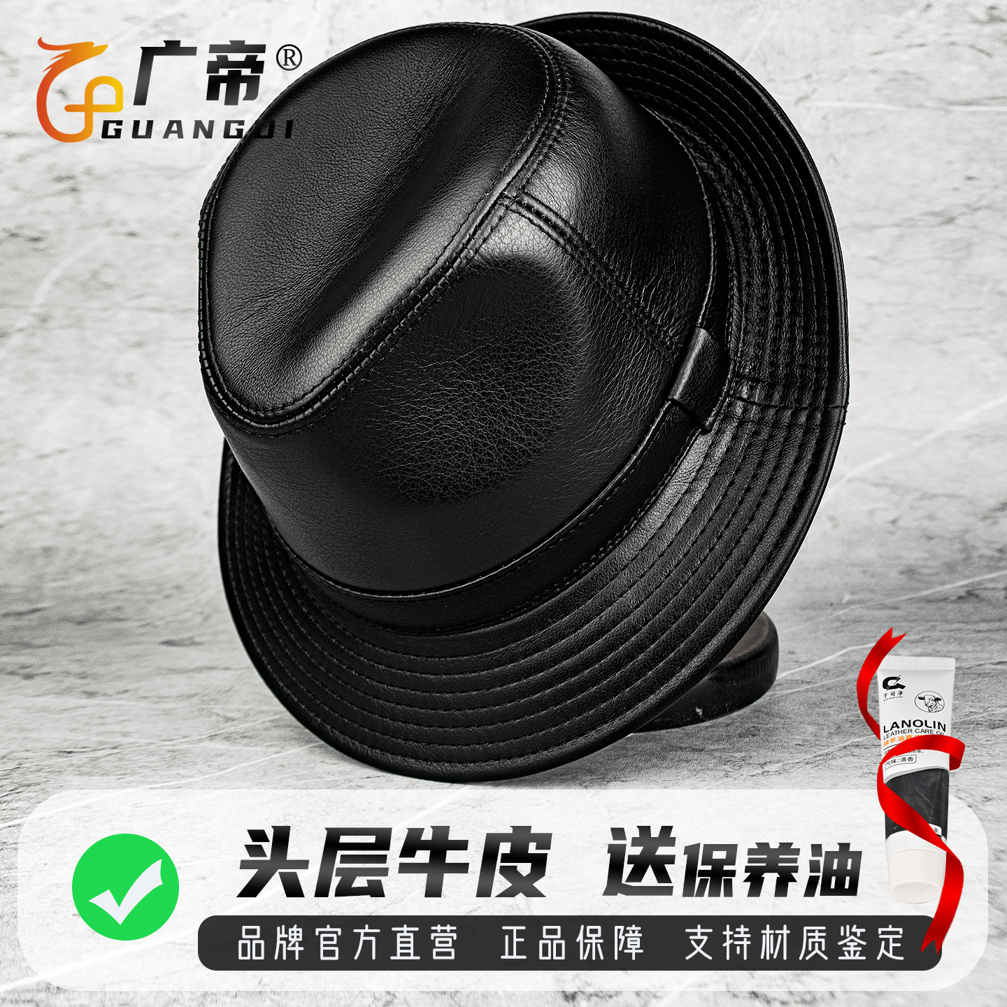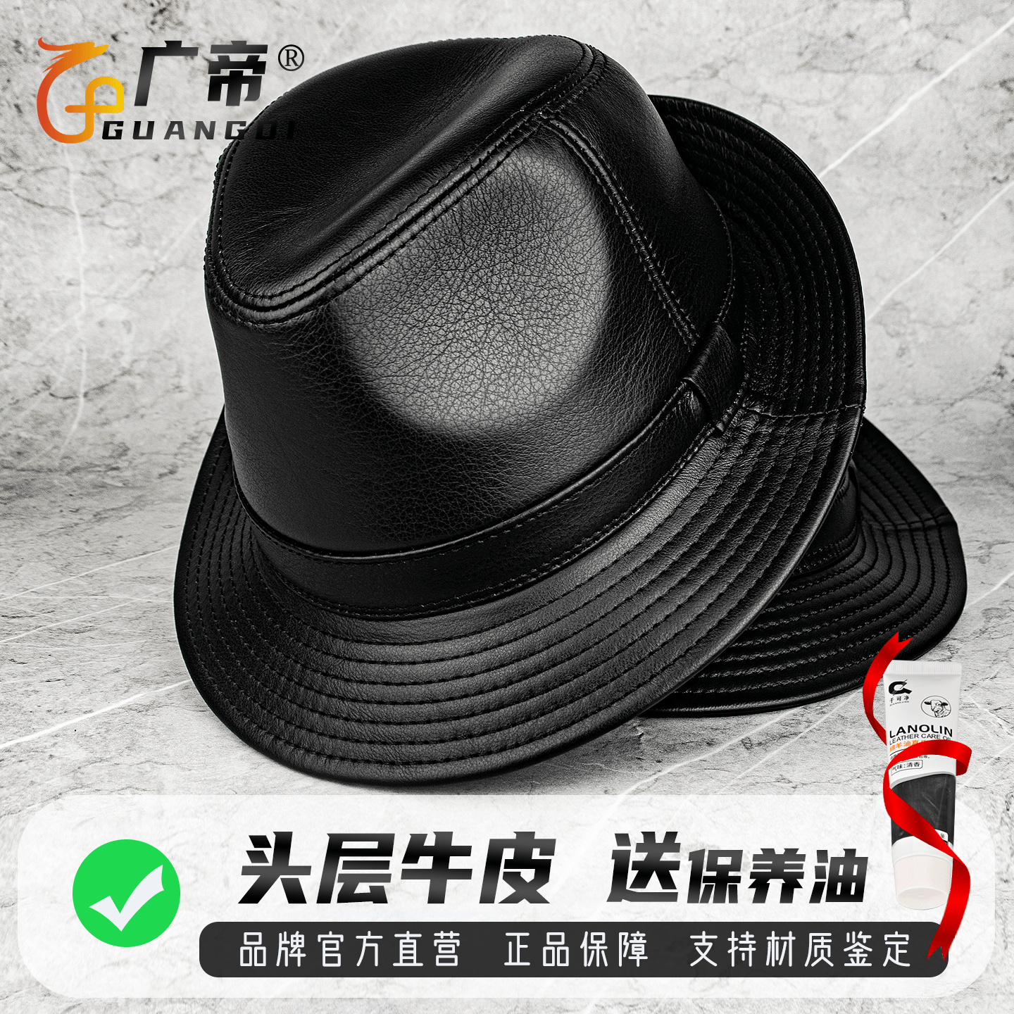 📚 广帝 牛皮 春秋冬季真皮帽子男加厚大檐复古绅士中老年人保暖礼帽