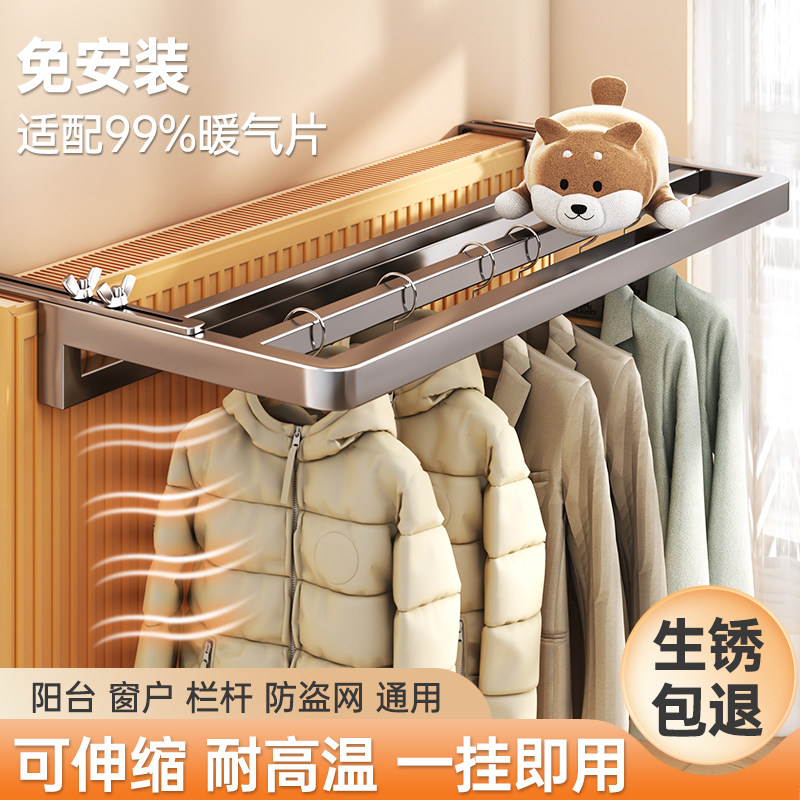 📚 暖气片上的晾衣架暖气管挂衣架专用挂钩置物架凉衣神器架子可伸缩