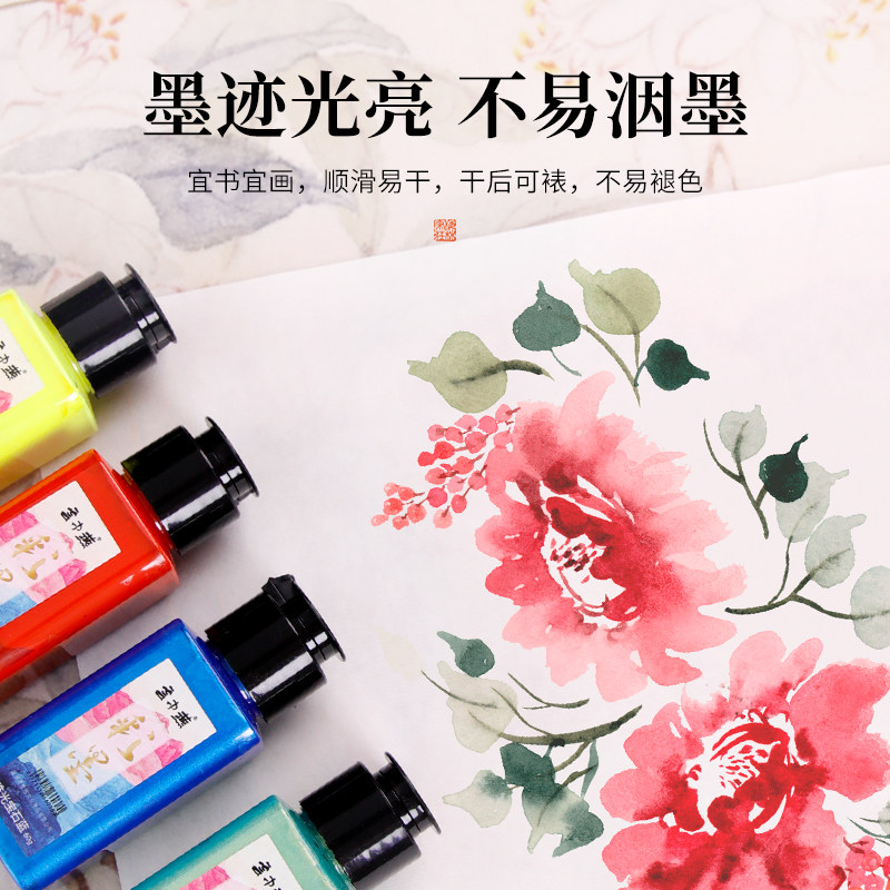 📚 梅林笔庄彩色墨汁水彩颜料小瓶12色国画云中燕彩墨60g毛笔泼彩专用儿童初学者书法水墨画山水染色写意工笔画