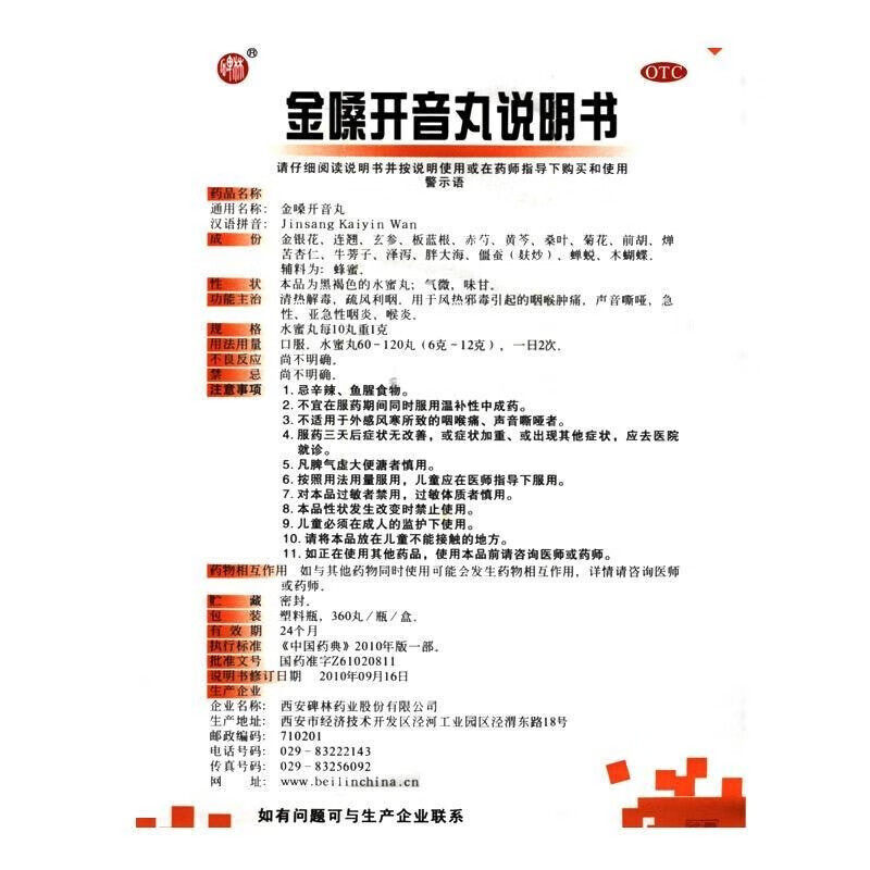 📚 碑林 金嗓开音丸 360丸 咽喉肿痛 声音嘶哑 急性亚急性咽炎 喉炎