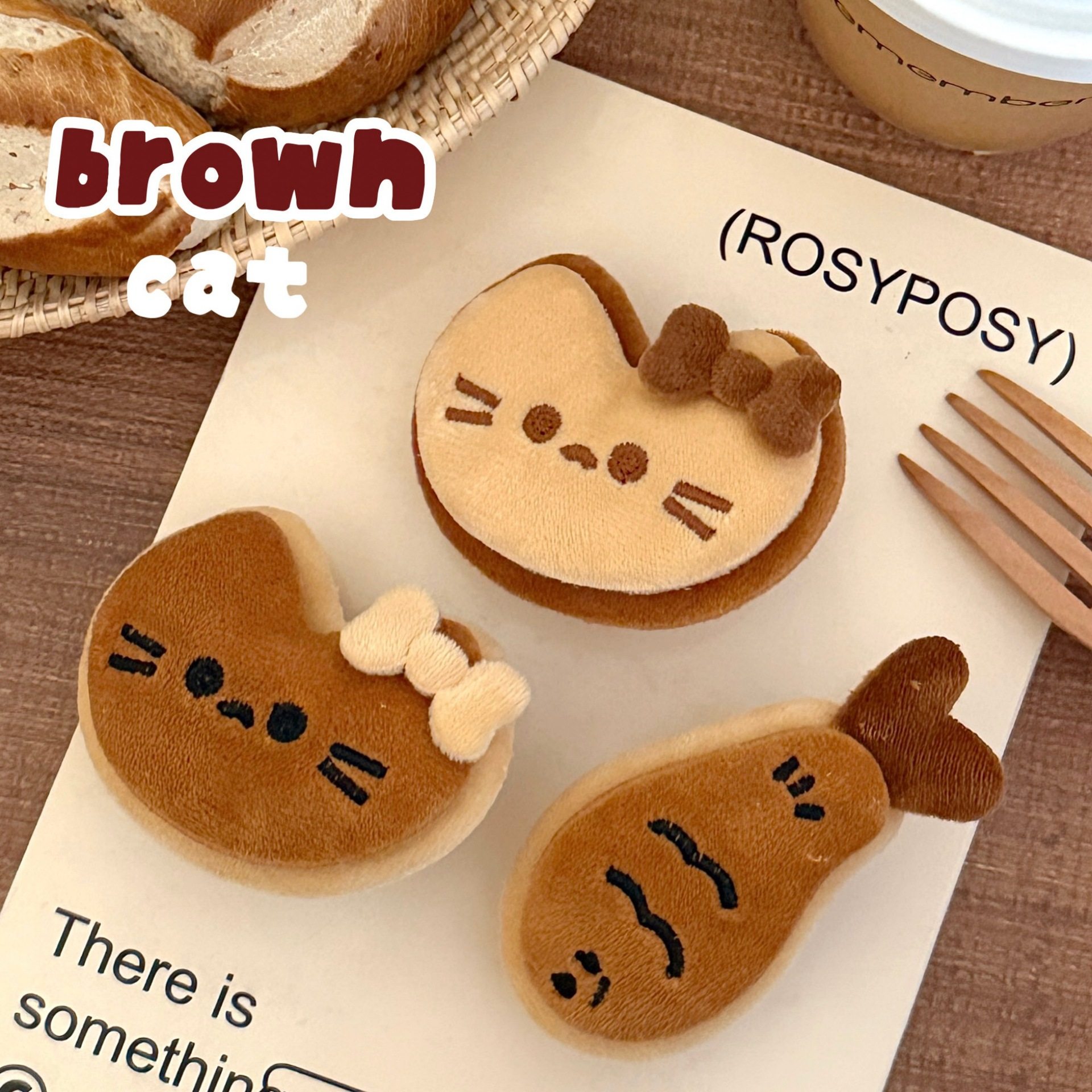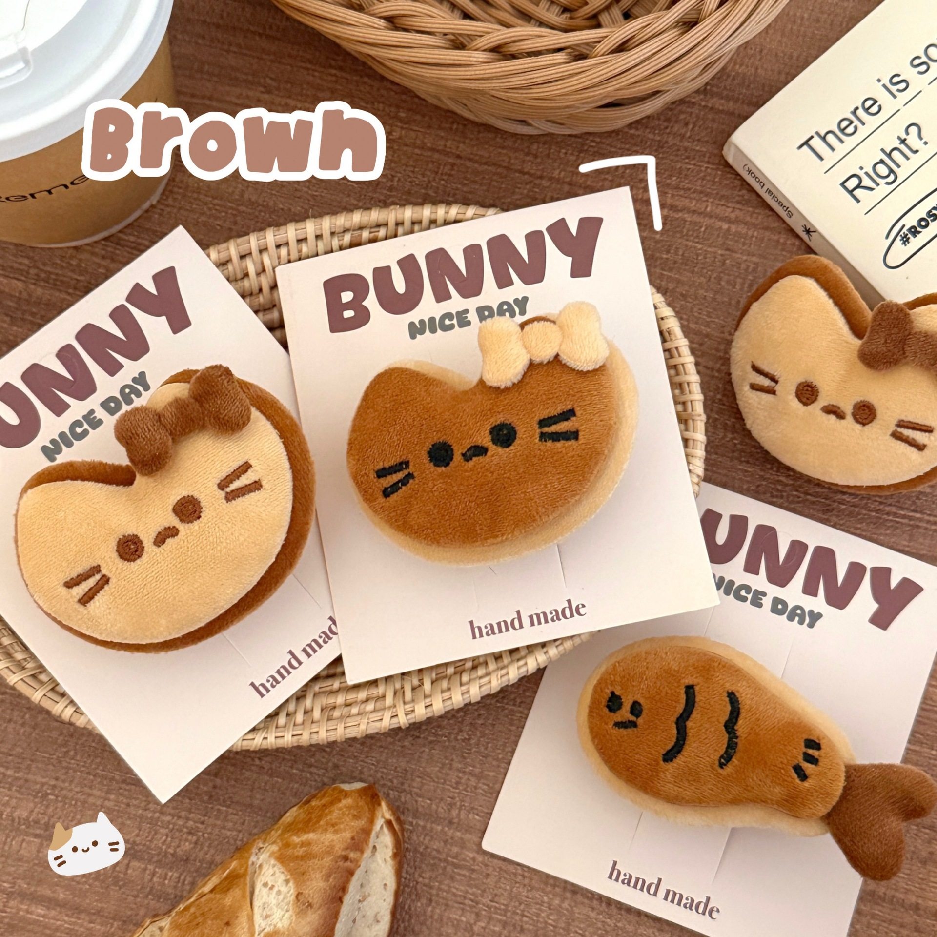 📚 薄利多销可爱奶咖色小猫小鱼公仔发夹创意烤饼干动物刘海夹少女心