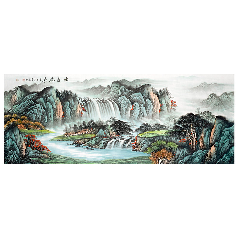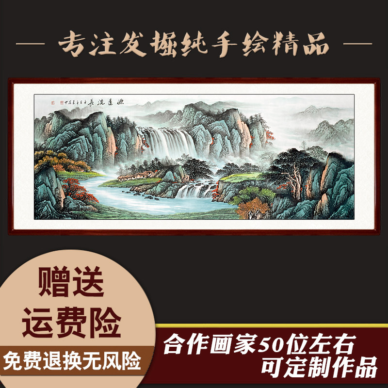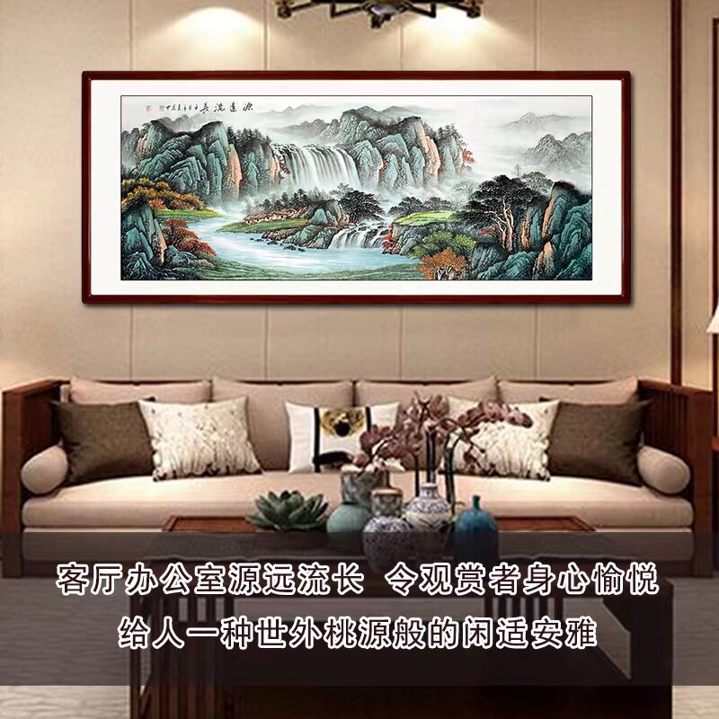 📚 纯手绘手工源远流长聚宝盆山水画芯国画镇宅新中式客厅办公室挂画