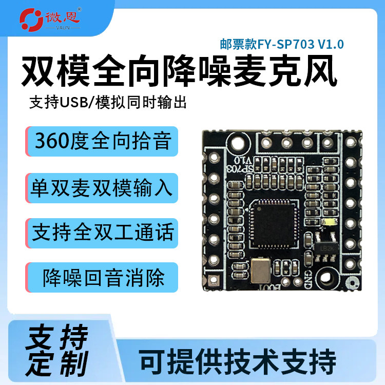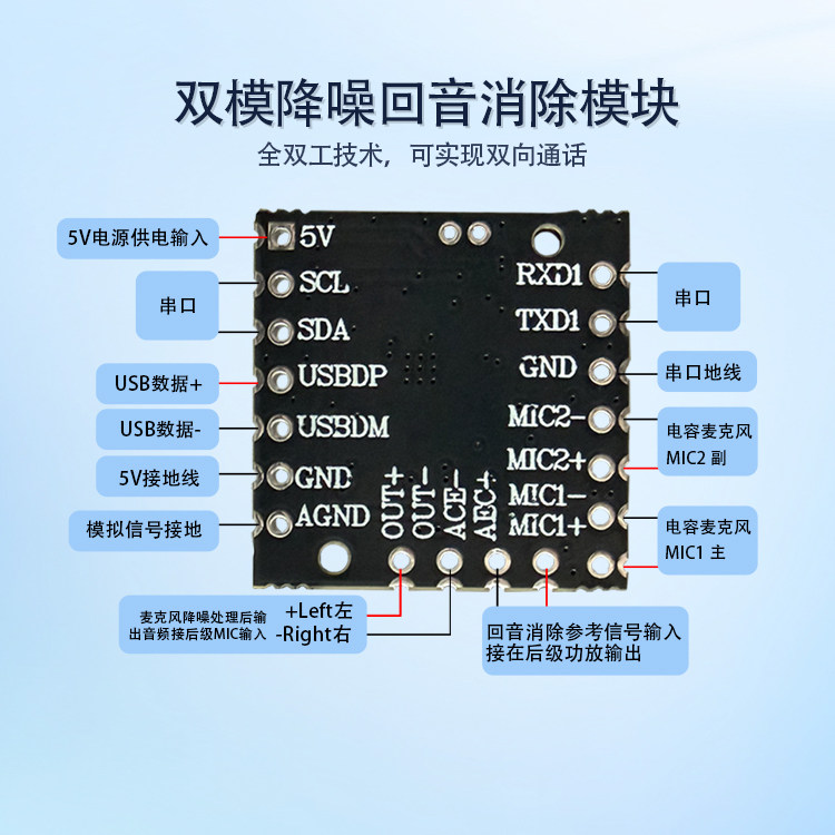📚 全双工降噪回音消除模块支持USB/模拟输出语音视频通话监控麦克风