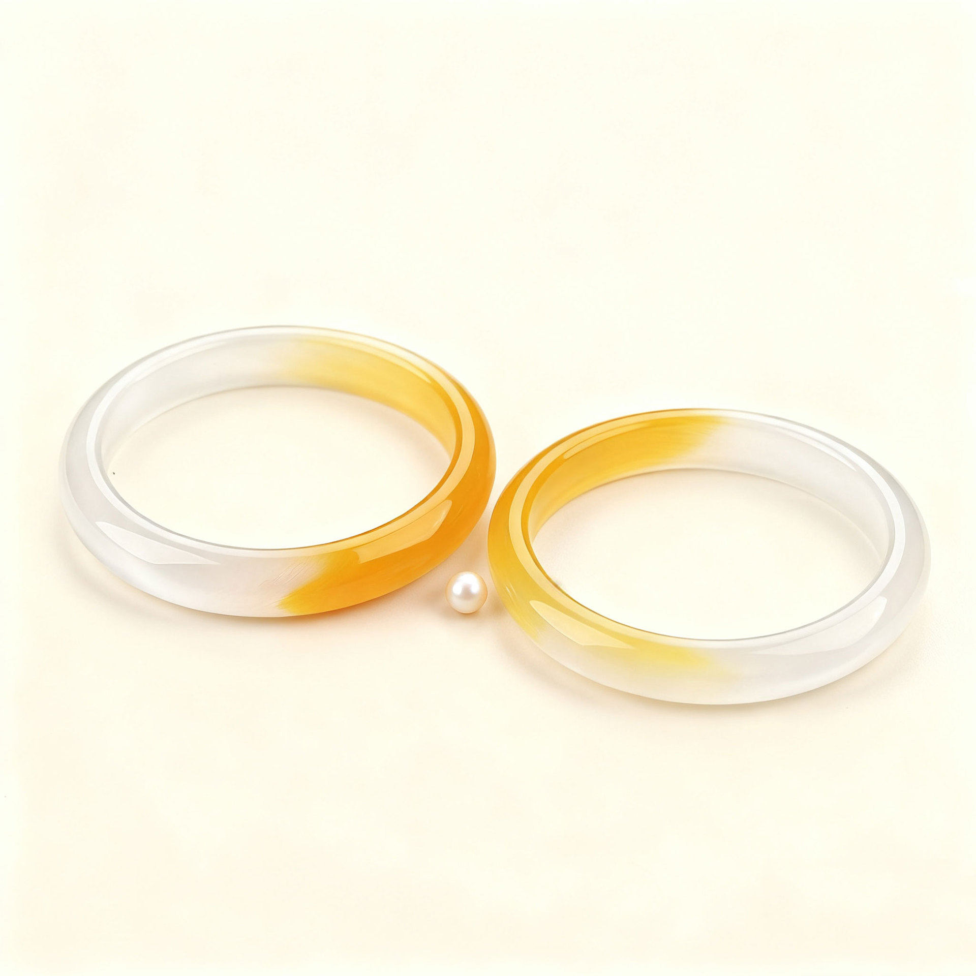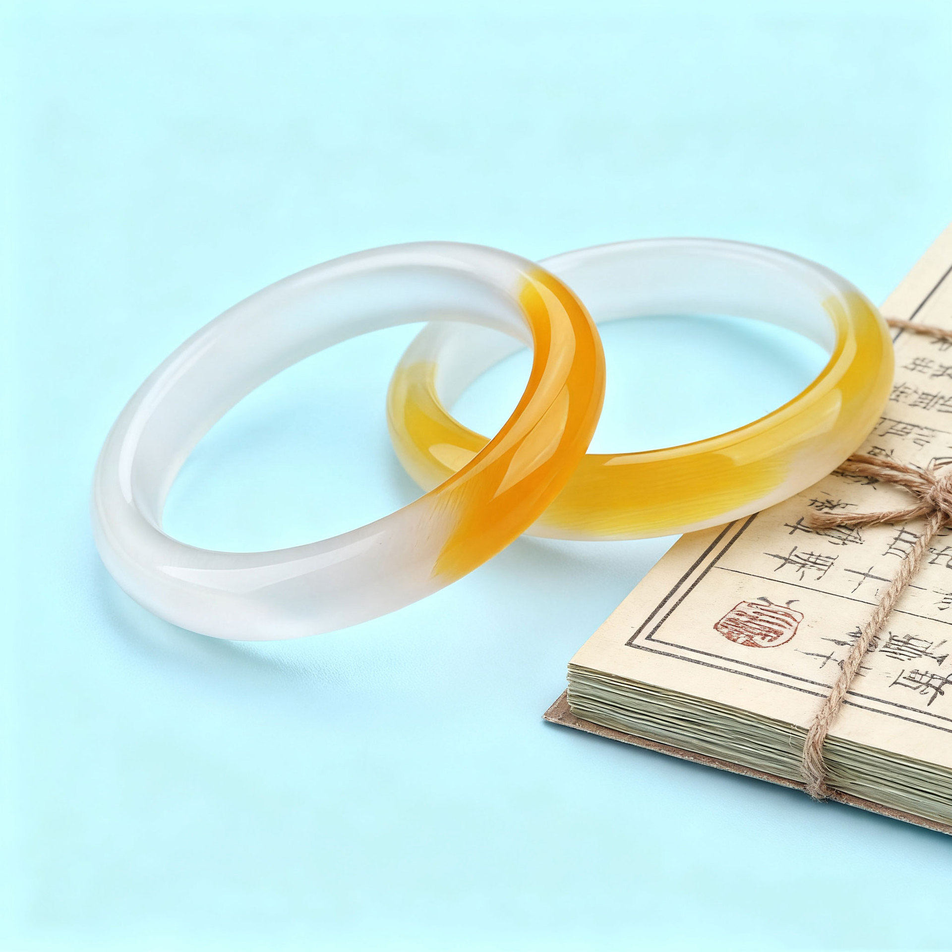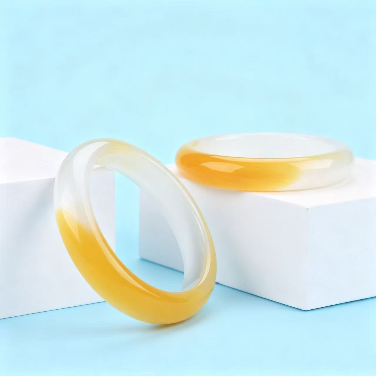 📚 2. 高冰透黄玉髓手镯女款天然半糖猫眼镯子新中式国风显白送闺蜜