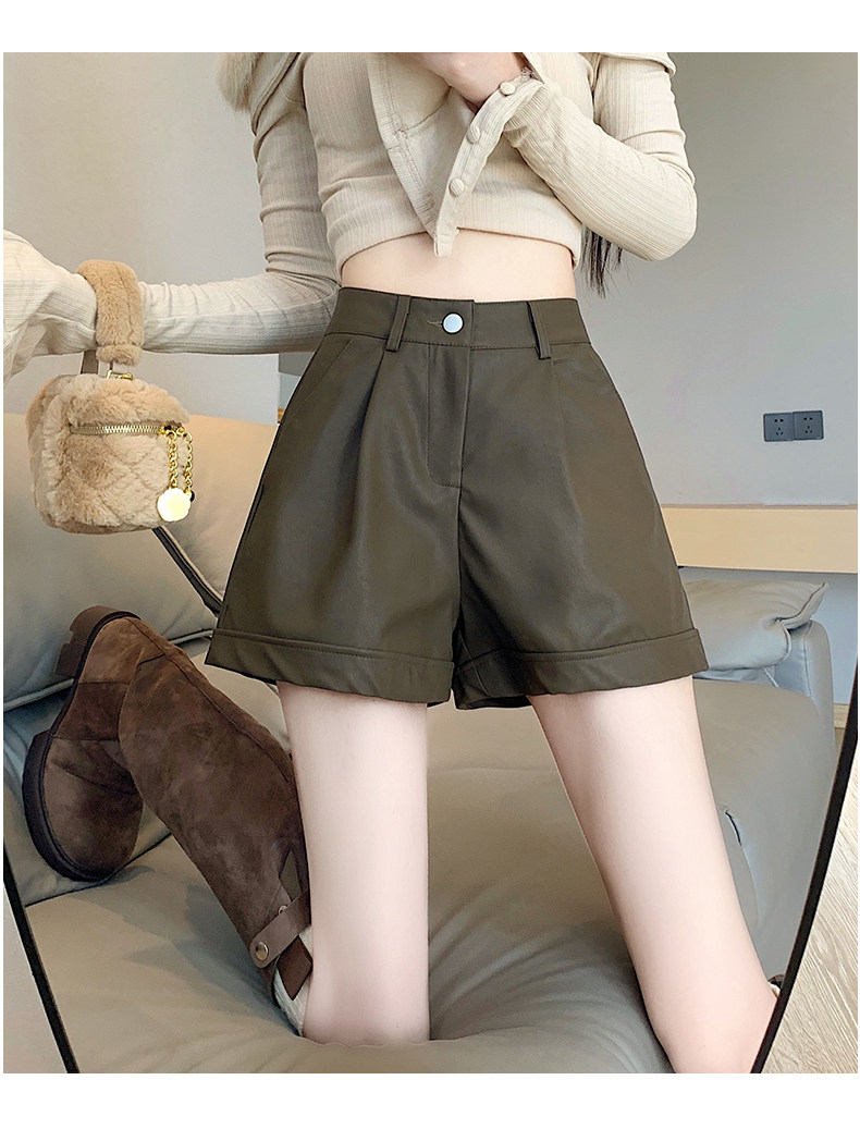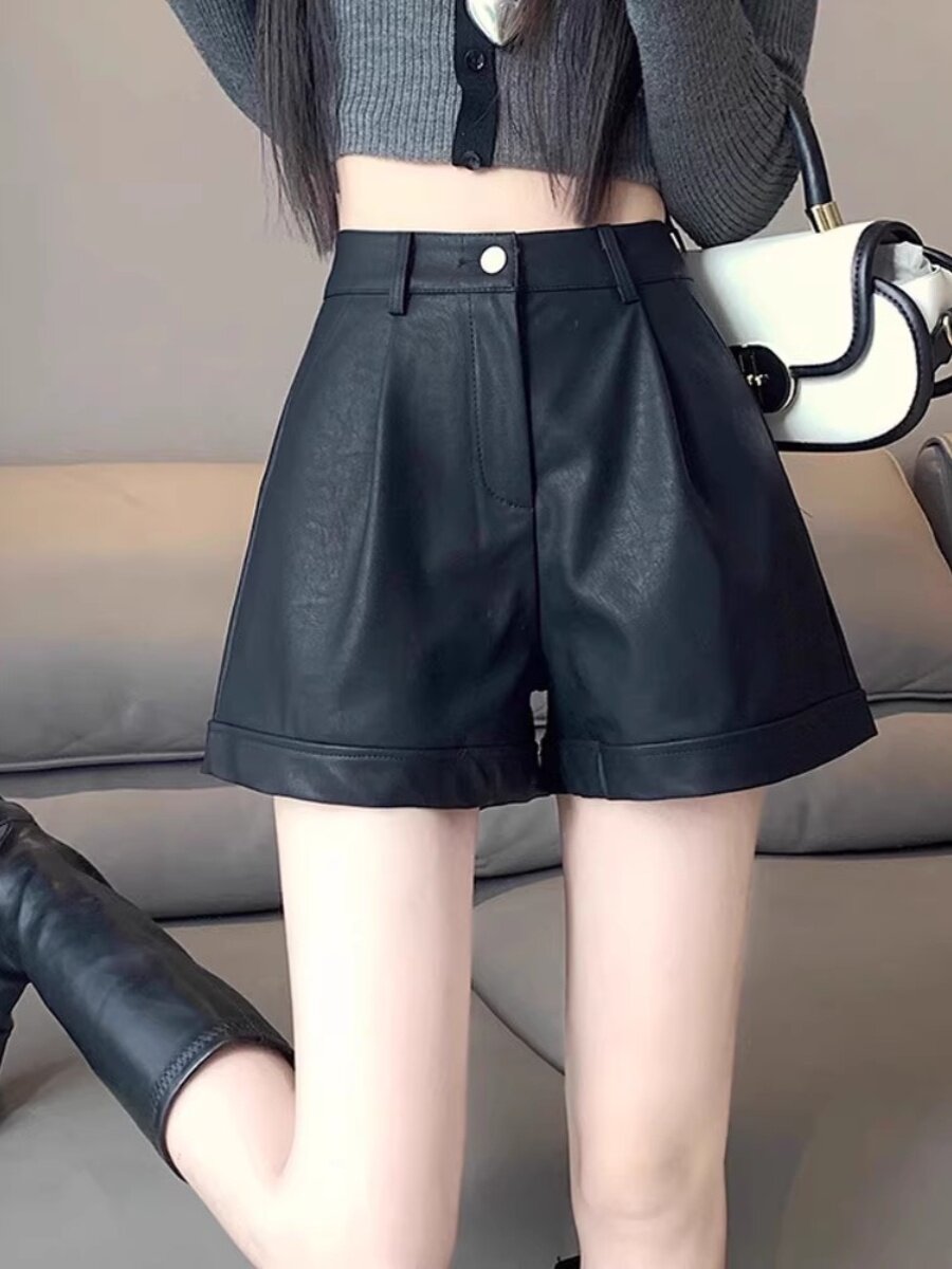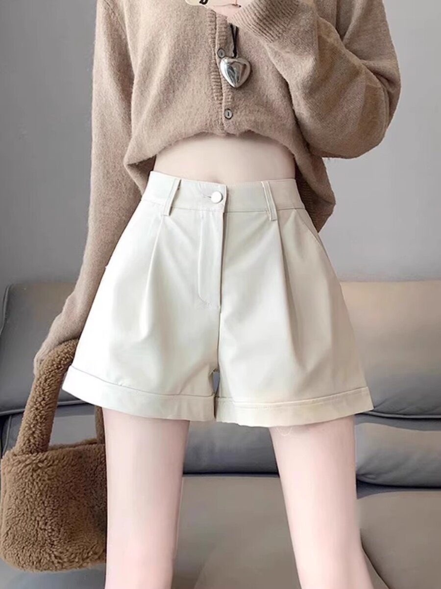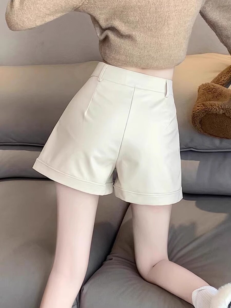 📚 小香风白色皮短裤秋冬小个子外穿a字靴裤高腰显瘦休闲pu皮裤女ins