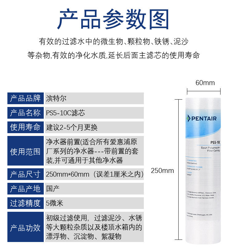 📚 爱惠浦滤芯PP棉10寸过滤棉 净水器滤芯 5只,900p h104通用PP棉