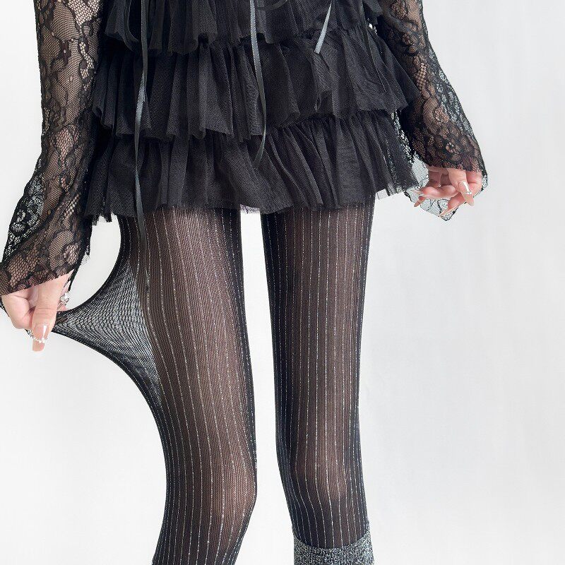 📚 2026银线黑色竖条纹连裤袜女薄款防勾丝打底袜显瘦竖条纹女款丝袜