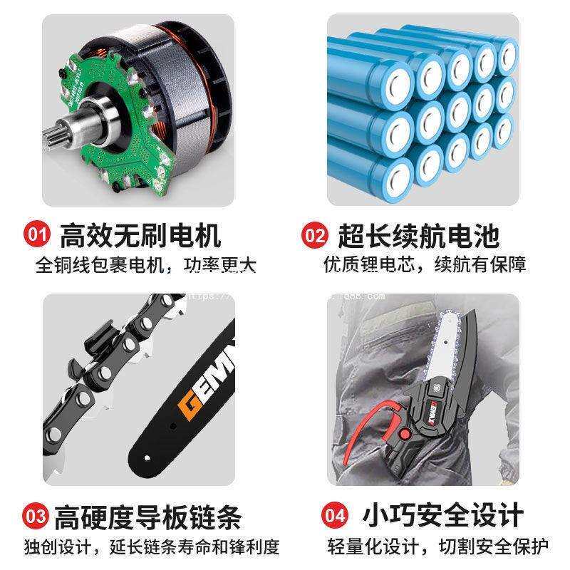 📚 戈麦斯锂电锯充电手提式电链锯小型伐木单手锯户外无线砍树修枝锯