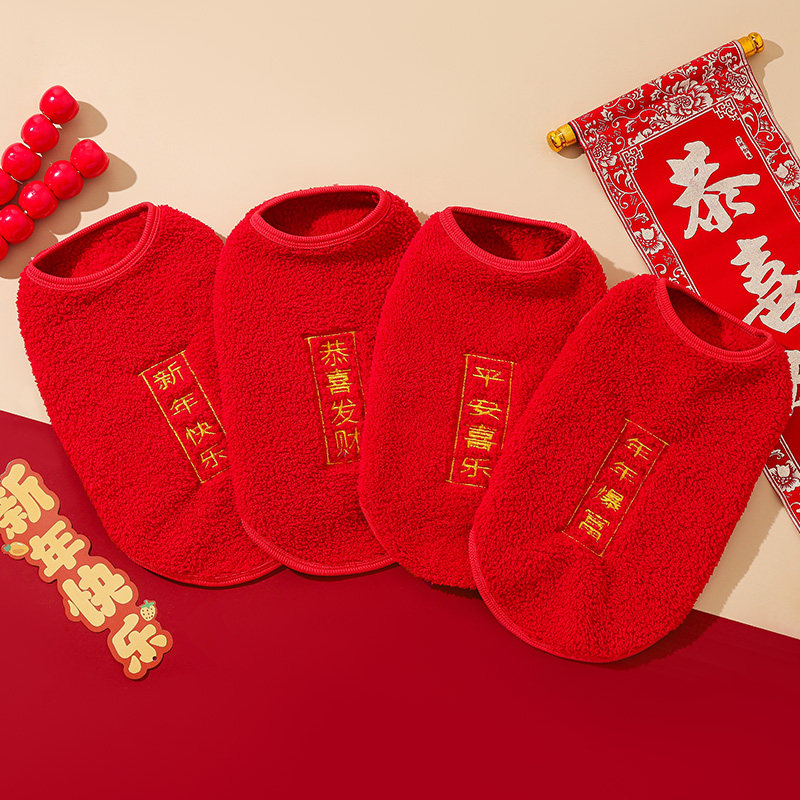 📚 狗狗衣服过年喜庆款马年冬季保暖小中大型犬柯基比熊宠物猫咪背心