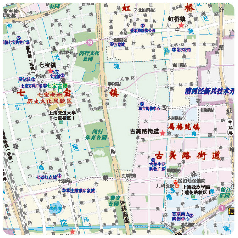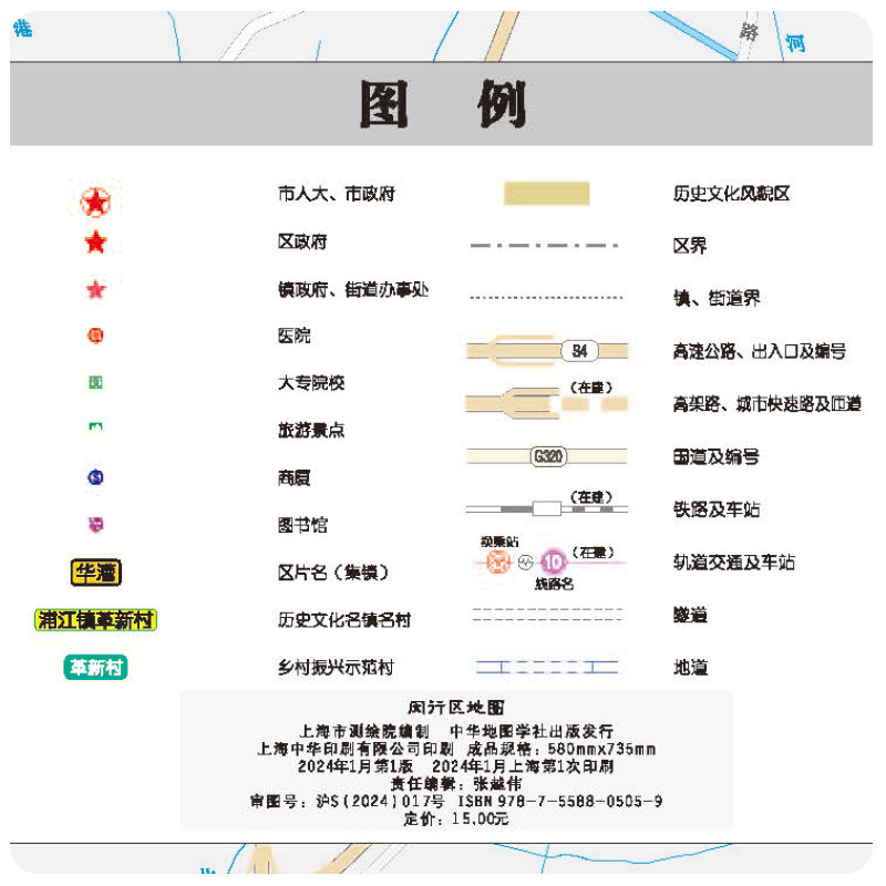 📚 【上海直发】上海市闵行区地图 上海分区交通旅游便民出行指南 地铁站景点学校医院商厦图书馆分布情况 中华地图学社