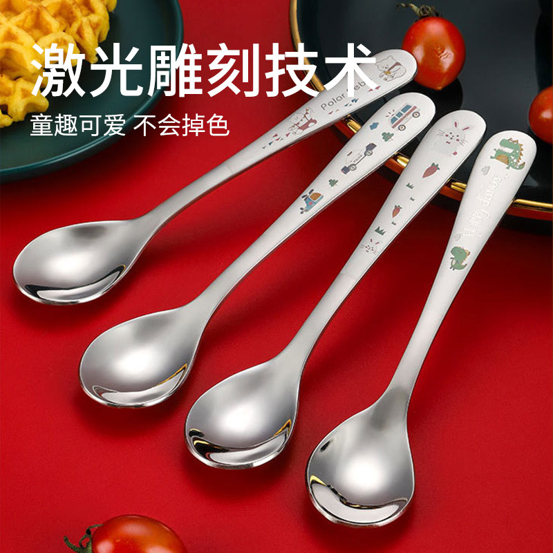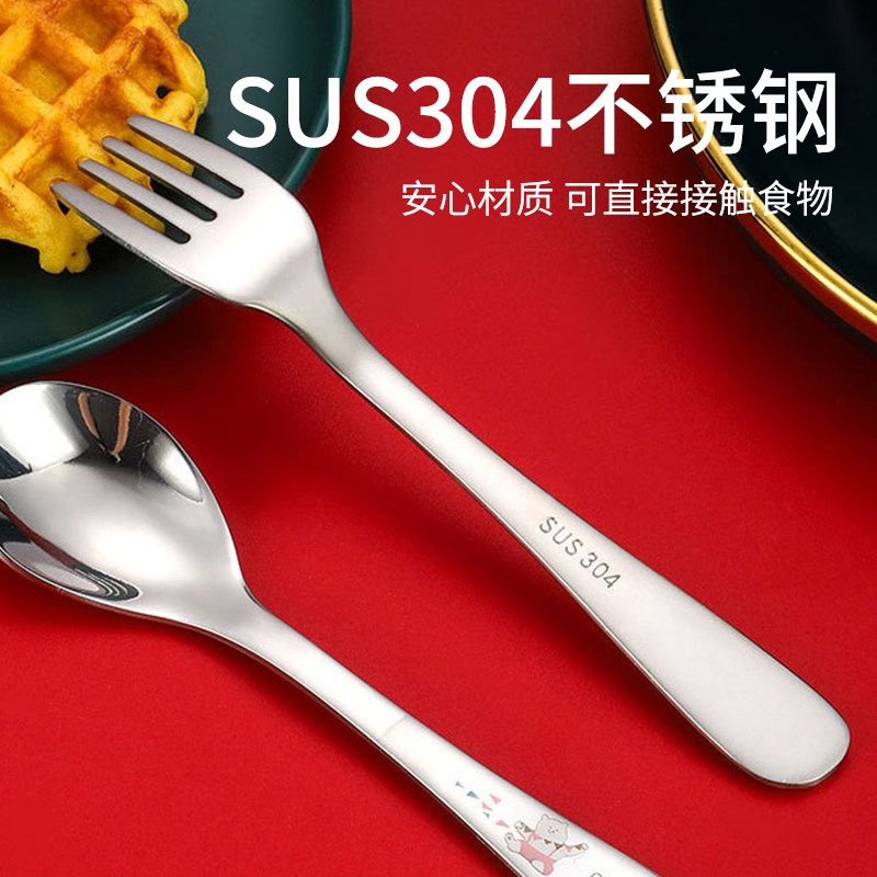 📚 儿童不锈钢叉勺便携套装宝宝吃饭专用勺子长柄元宝勺304辅食勺子