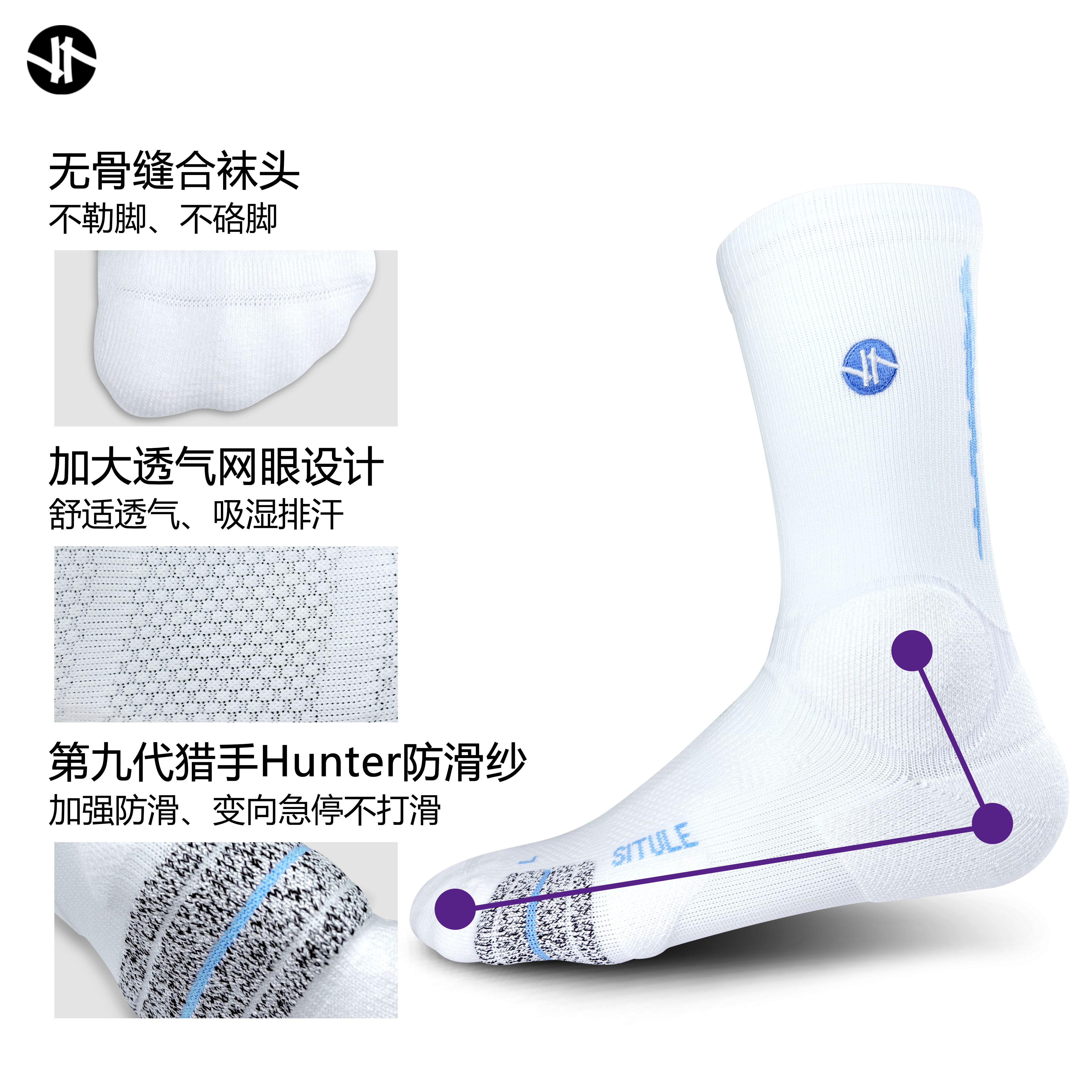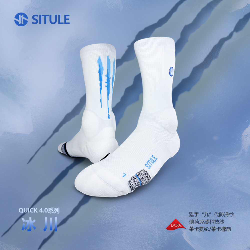 📚 斯图勒篮球袜【冰川】美式能量条高筒防滑专业球员精英训练运动袜