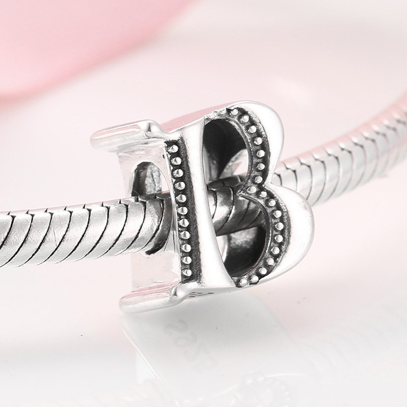 📚 S925纯银珠子 二十六个字母系列串珠 charm手链DIY配件散珠银饰品