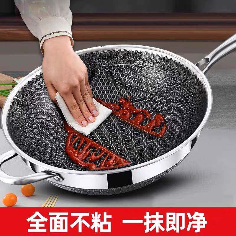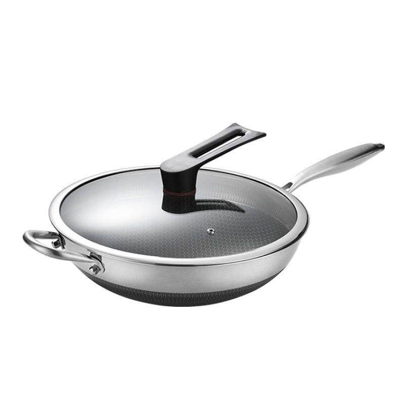 📚 曼太凹面电磁炉炒菜锅专用不粘锅不锈钢炒锅凹型商用锅圆底炒锅