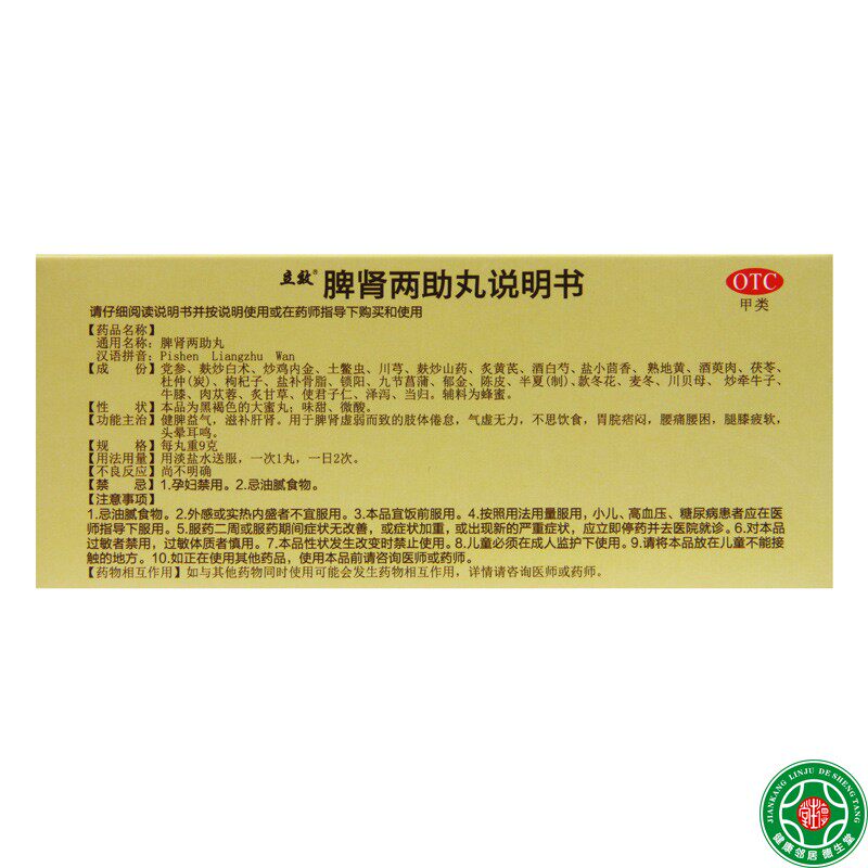 📚 立效脾肾两助丸9g*10丸大蜜丸 气虚无力腰痛腰困腿膝疲软头晕耳鸣