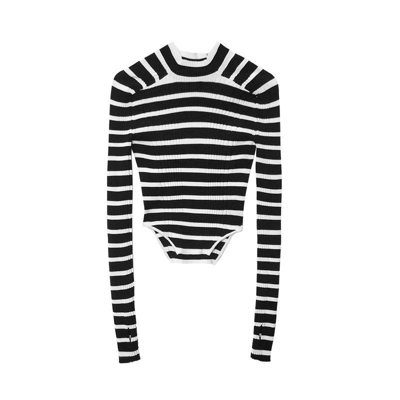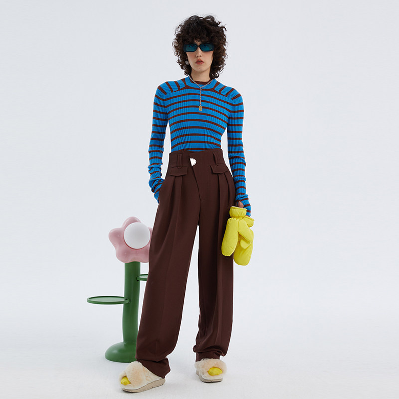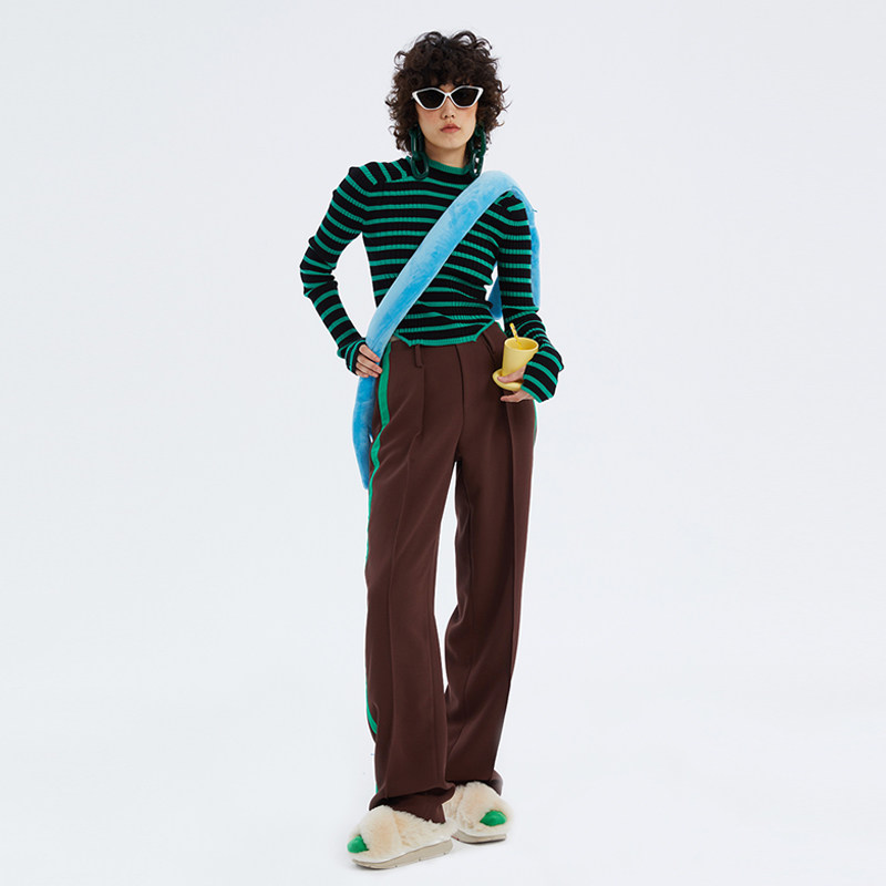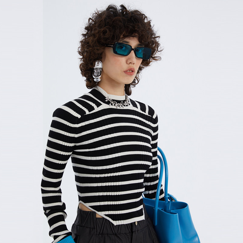 📚 N·MORE设计师品牌 秋冬 撞色半领拼接条纹羊毛打底针织衫
