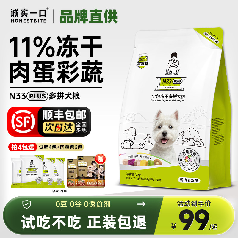 📚 诚实一口狗粮n33plus小型犬大型犬全价成犬幼犬鸭肉梨犬粮通用型