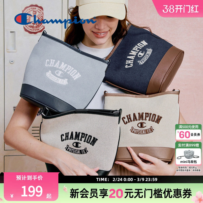📚 Champion冠军官方新款单肩包水桶包大容量男女斜挎两用包帆布包