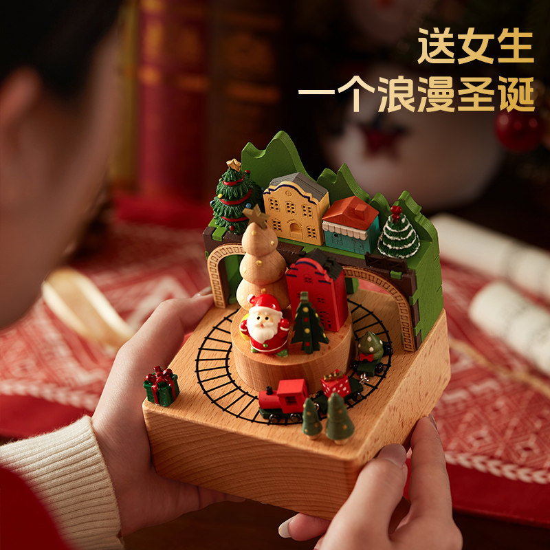 📚 圣诞节八音盒可旋转小火车音乐盒木质女孩女生生日儿童圣诞树礼物