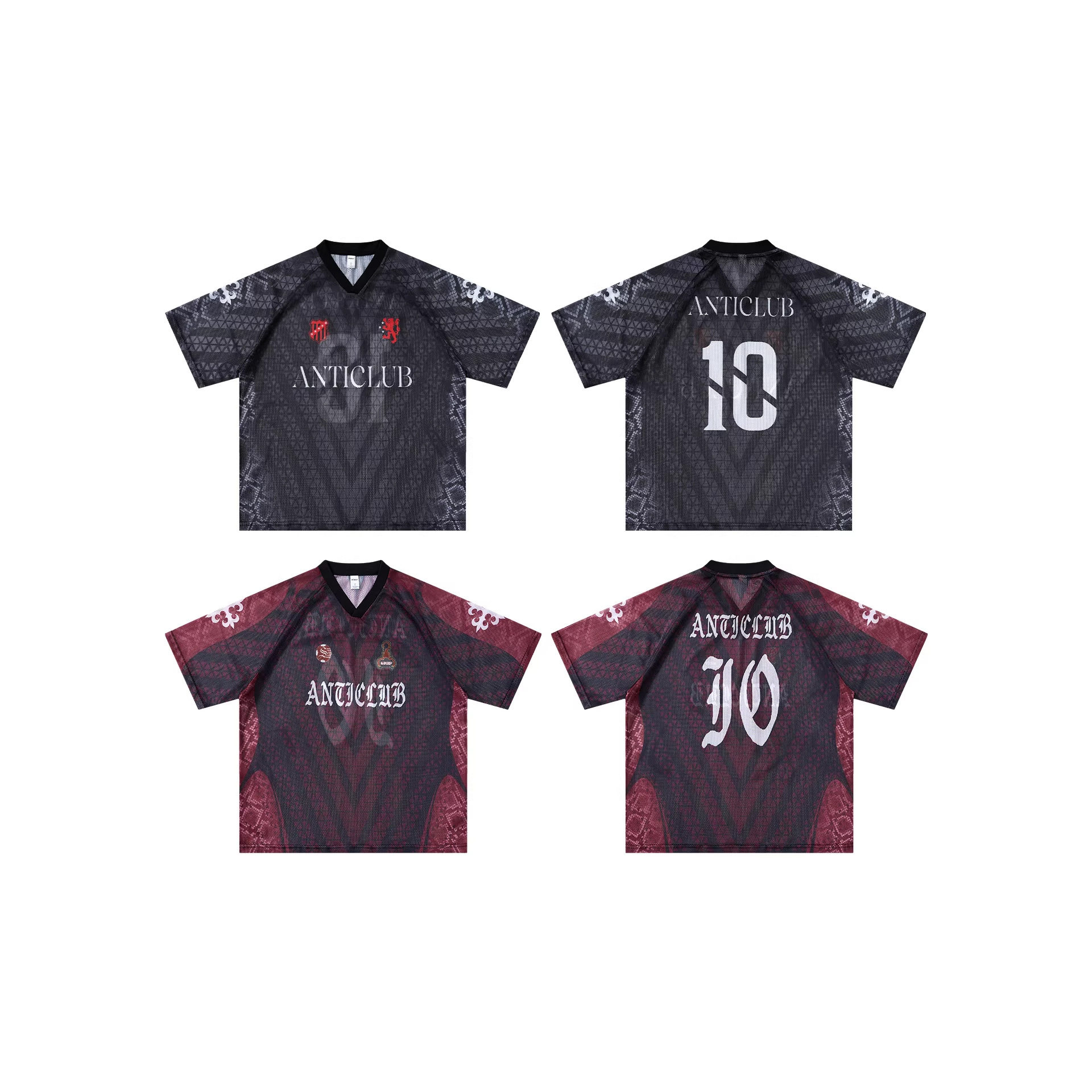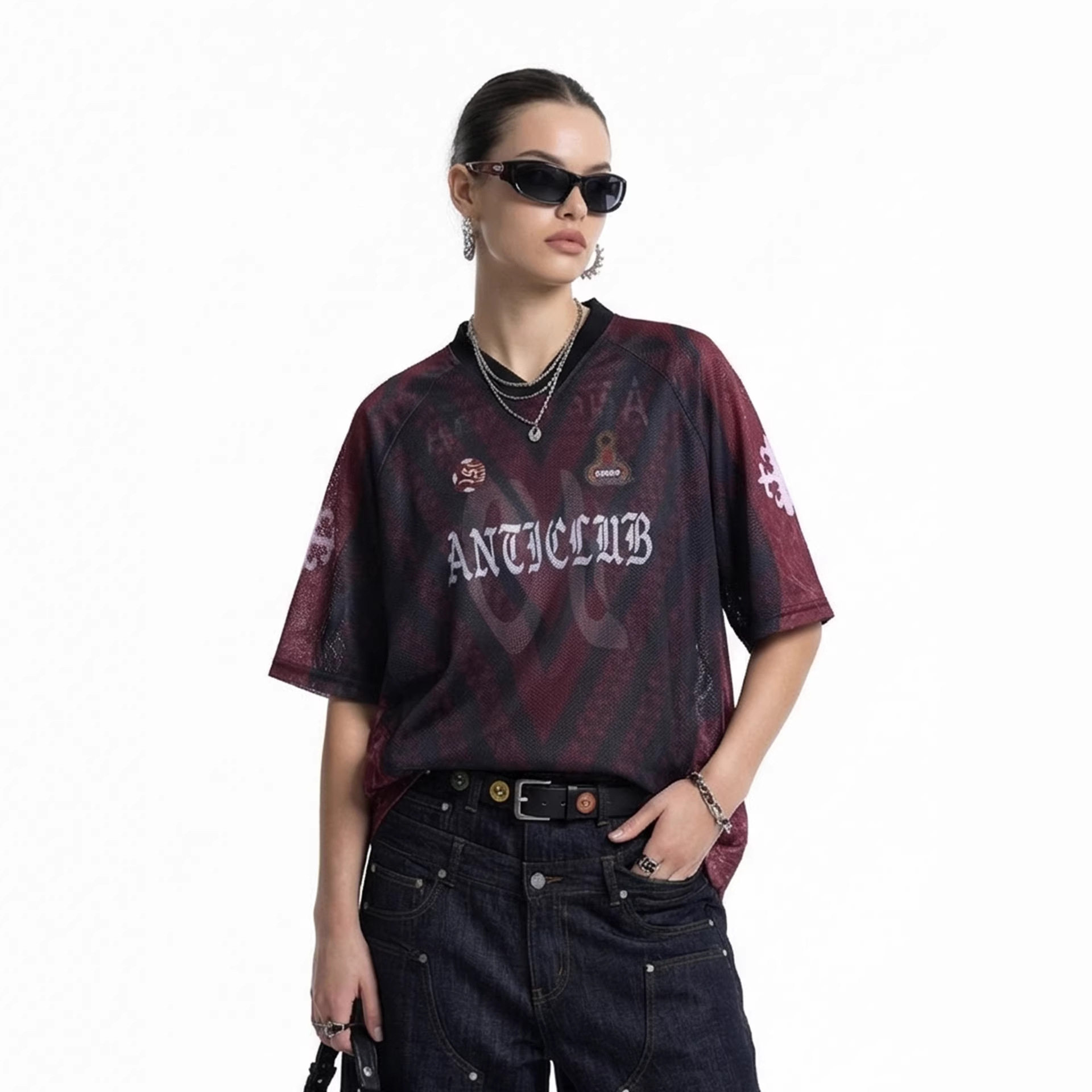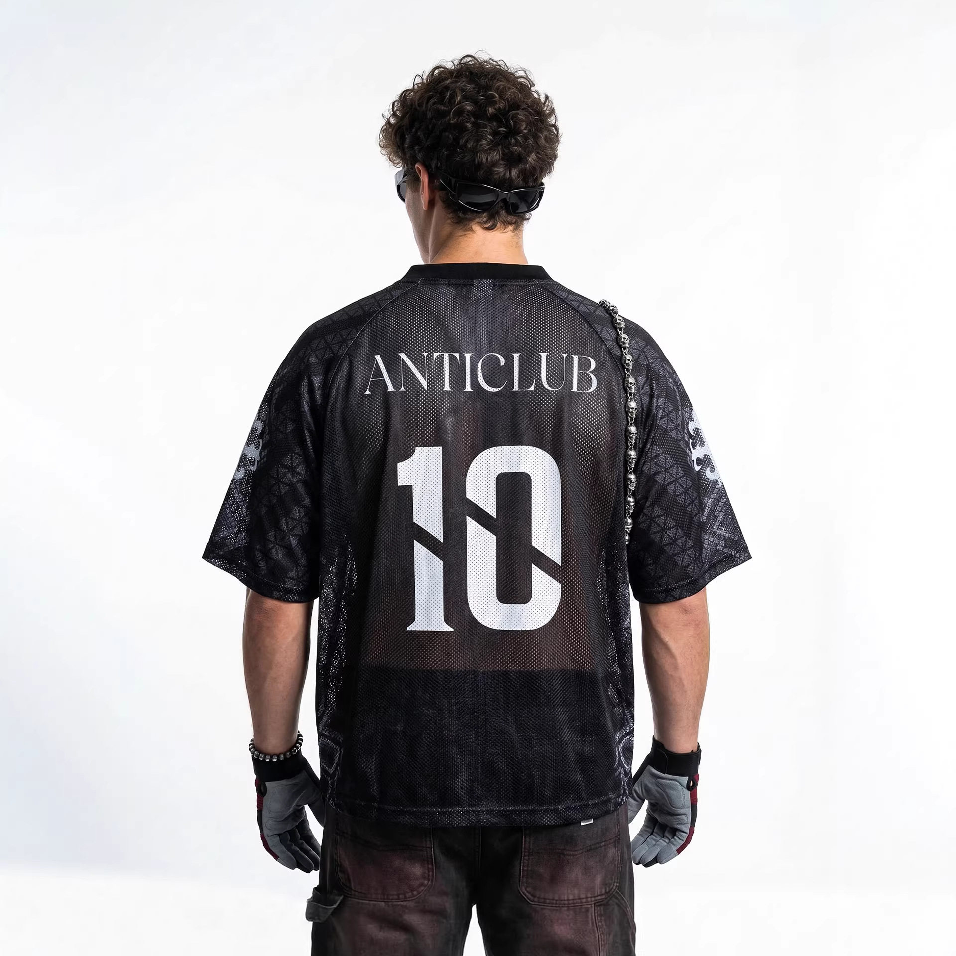 📚 inflation男装|暗黑几何纹网洞球衣夏季美式街潮个性印花V领短袖