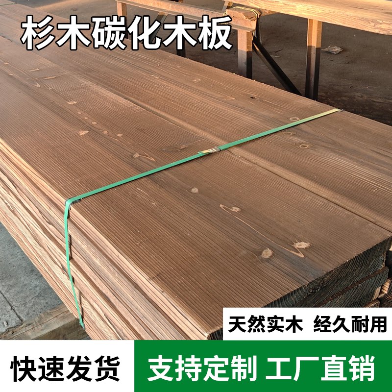 📚 杉木柳杉碳化木板宽板楼梯踏步板户外防腐木整板吧台木地板跳板