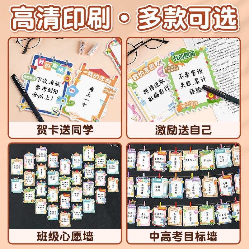📚 心愿卡小学生新学期目标墙贴许愿卡装饰中考加油励志小卡片期末手写学习计划班级开学仪式感教室氛围布置B1