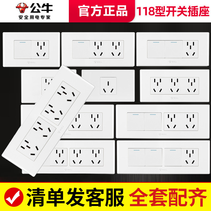 📚 公牛开关插座118型面板多孔家用带九孔9十五孔插板墙壁暗装墙插座