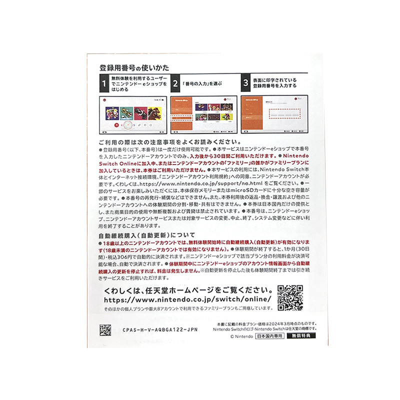 📚 任天堂Switch NS日服个人会员月卡一个月30天日本日区日版Nintendo Switch Online eshop兑换码激活码