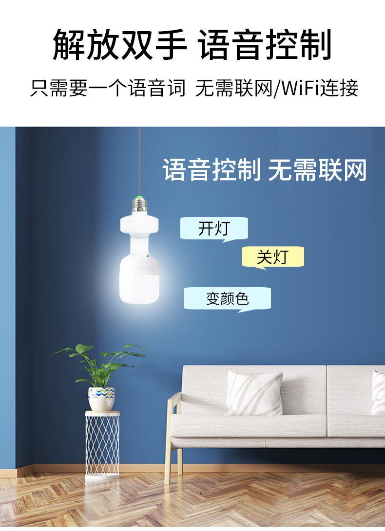 📚 人工智能语音控制led灯泡床头卧室口令说话声控开关喊得亮小夜灯