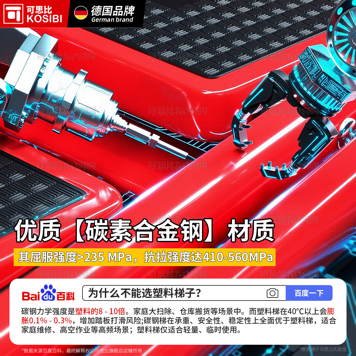 📚 可思比梯子家用人字梯伸缩梯加厚折叠梯乔迁步步高升红色十大品牌