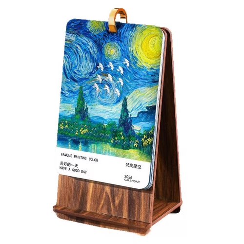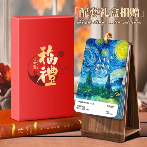 📚 油画木质台历2026年新款文创文艺复古ins风小摆件办公室桌面迷你日历创意内芯马年定做广告位印logo定制月历