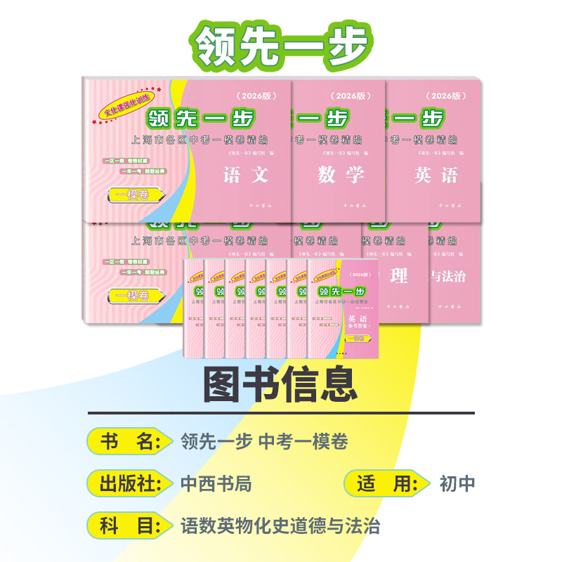 📚 现货2026年上海中考一模卷英语语文数学物理化学历史道法全套初三领先一步文化课强化训练初中九年级必刷模拟试卷走向成功中考二模