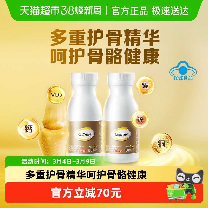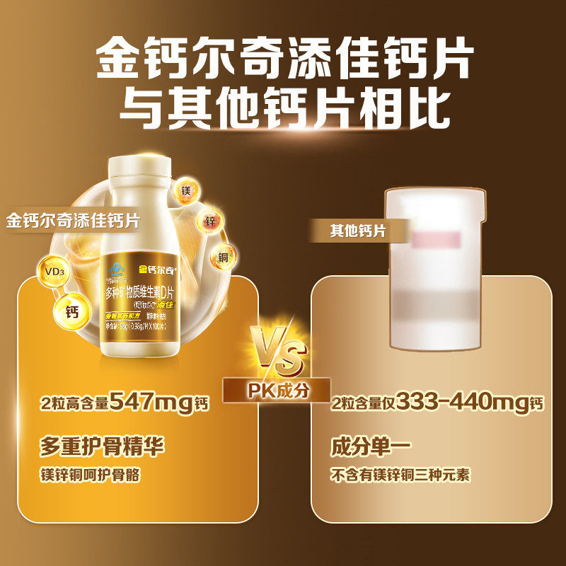📚 钙尔奇添佳中老年成人男女100片*2瓶钙片含维D3易吸收送礼补钙