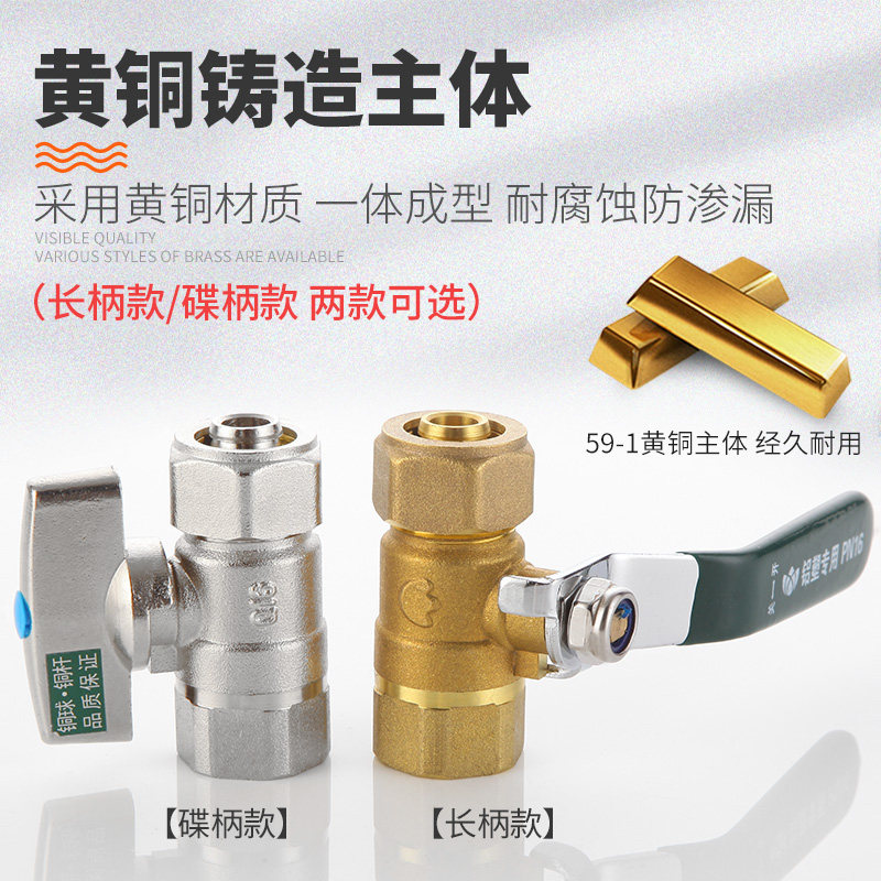 📚 全铜铝塑管球阀1216地暖管1620水管4分6分内丝外丝DN15阀门20开关