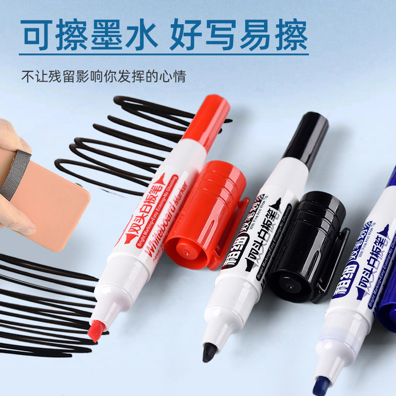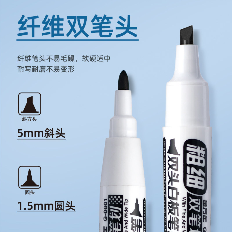 📚 金万年双头白板笔易写易擦粗细两头水性笔1.5~5mm斜头白板写字笔办公开会教师培训专用写字板笔可擦大头pop笔