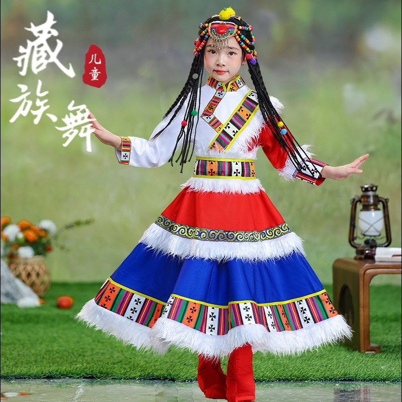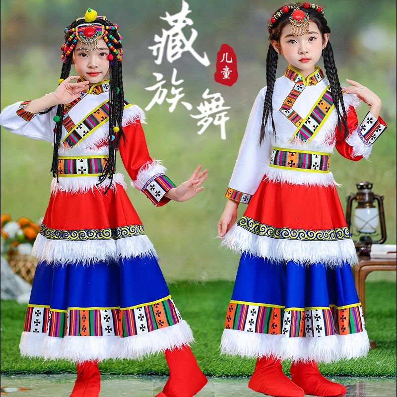 📚 儿童藏族演出服西藏男女童藏裙藏袍新款少数民族舞蹈蒙古族表演服