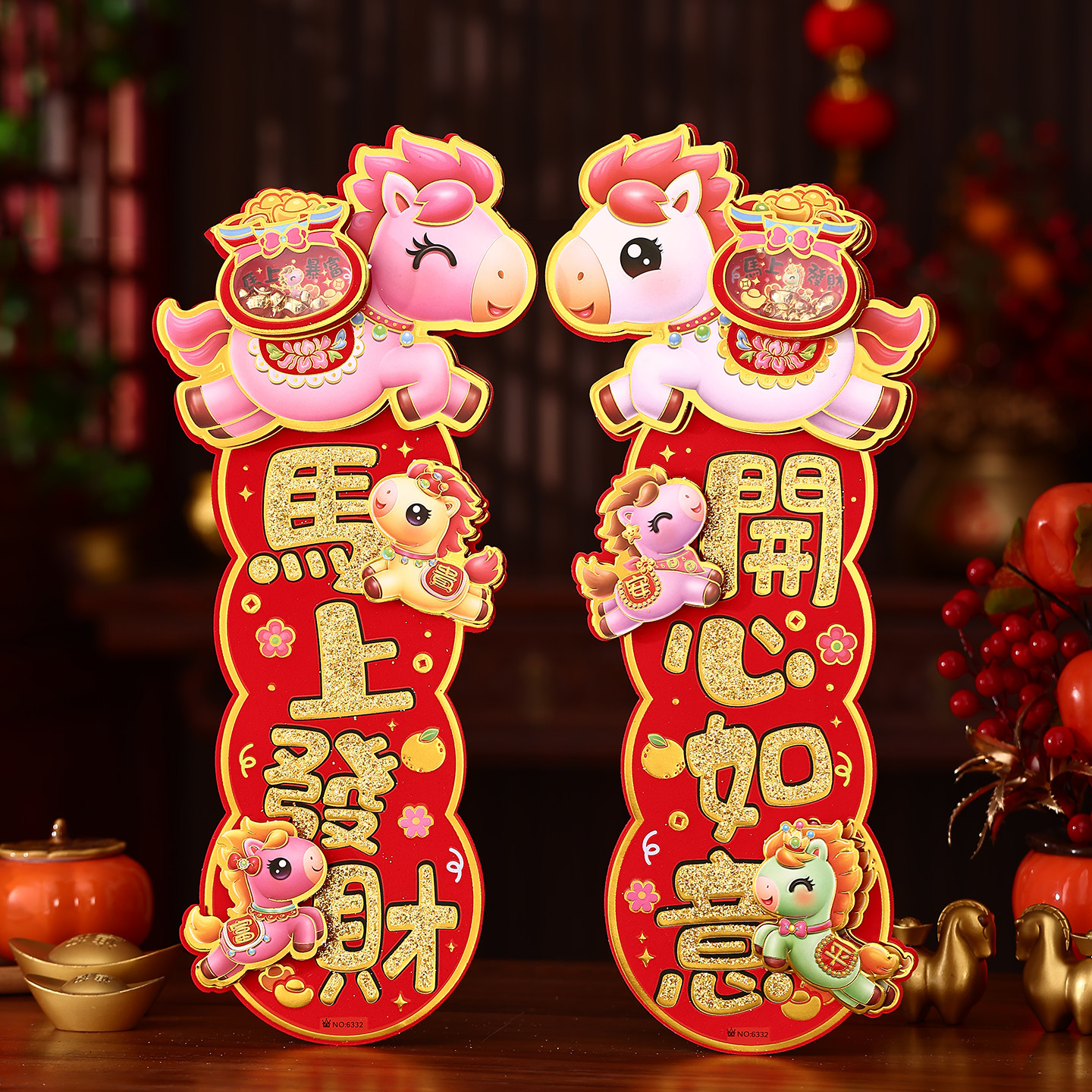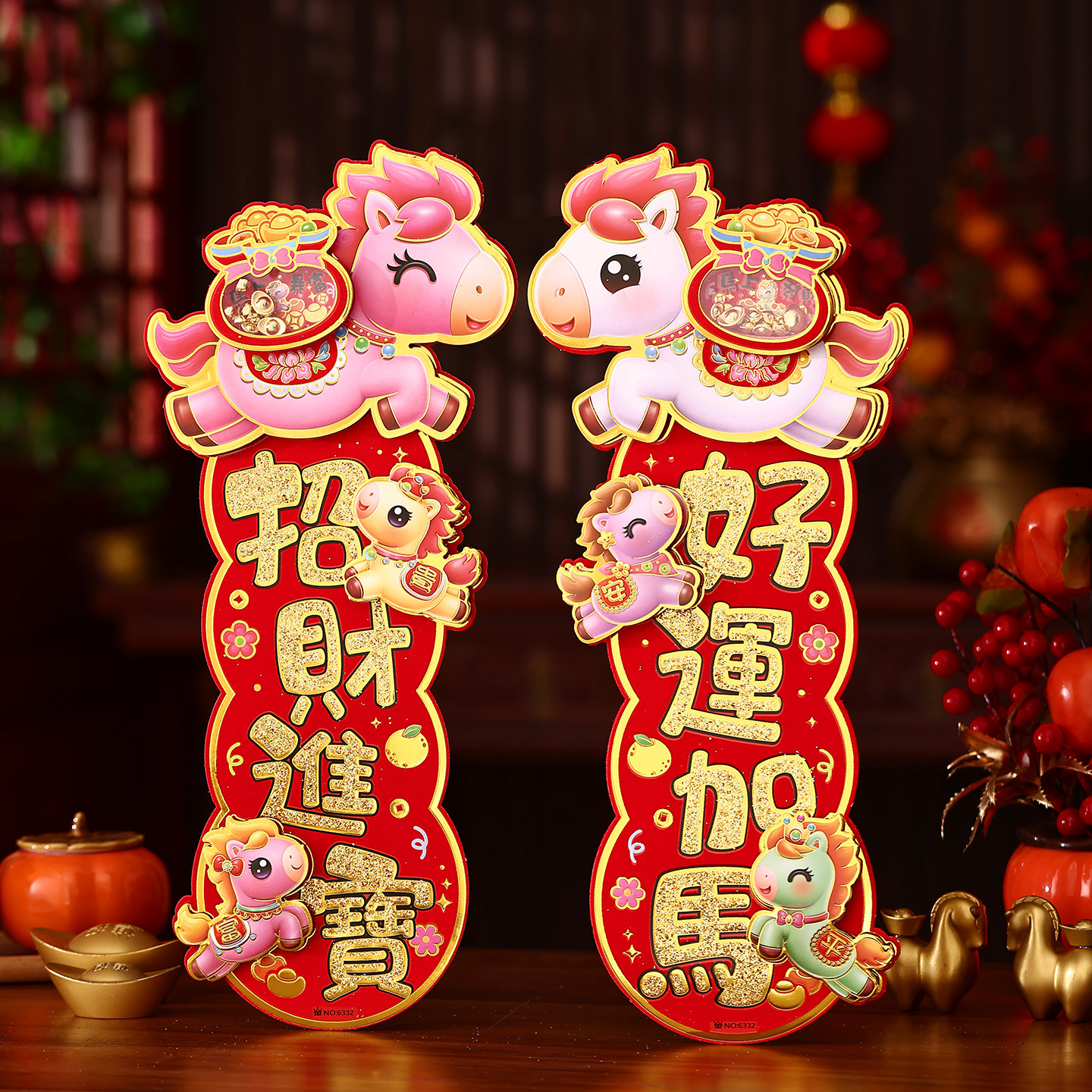 📚 马年卡通对联横批挥春2026新年装饰福字门贴春节贴纸春联过年小号