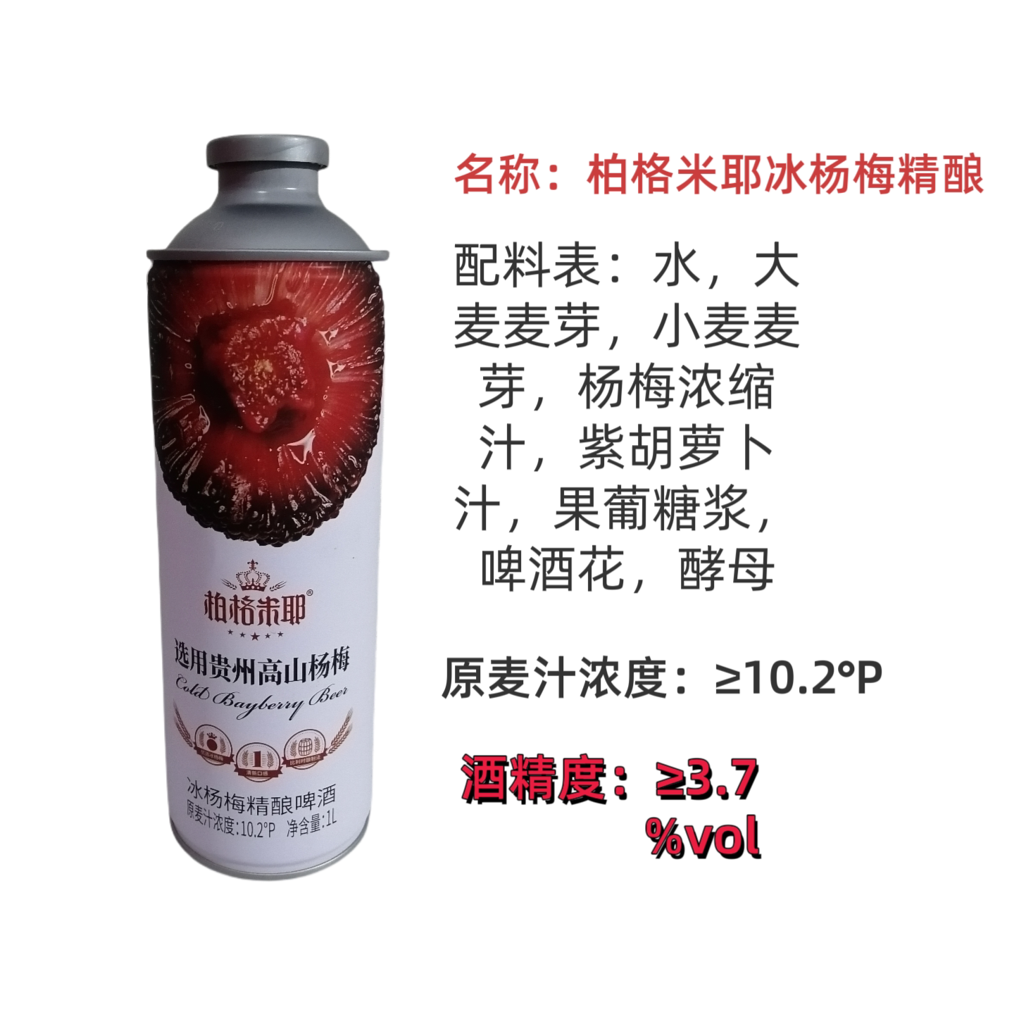 📚 柏格米耶冰杨梅精酿贵州杨梅1升麦芽度10.2酒精度3.7好喝天冷火锅