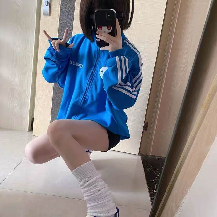 📚 [永远幸福]原创宅萌系亚文化立领校供感学生秋冬条纹卫衣拉链外套