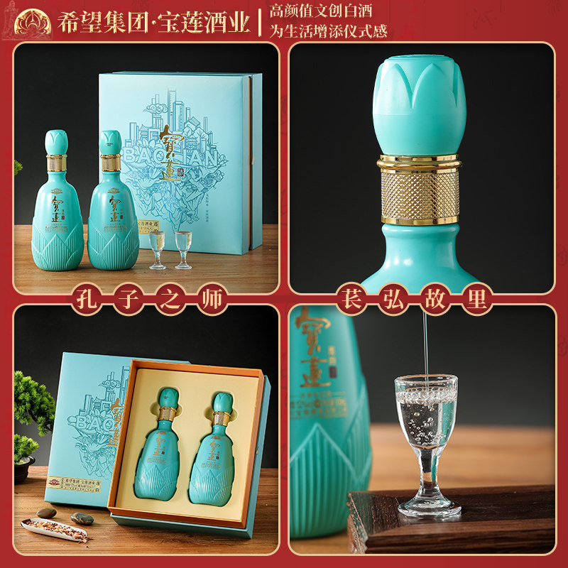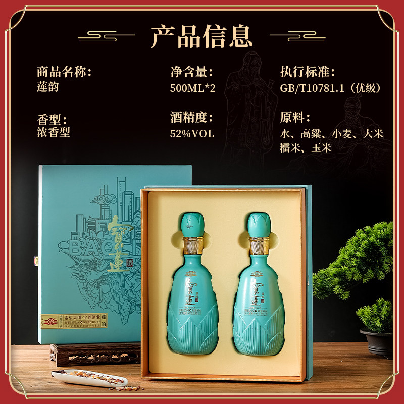 📚 【资阳特产】宝莲浓香型白酒莲韵52度500ml礼盒送礼2瓶纯粮年货
