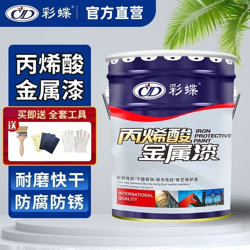 📚 彩蝶丙烯酸金属漆防锈户外钢结构栏杆铁艺设备防腐彩钢瓦速干面漆