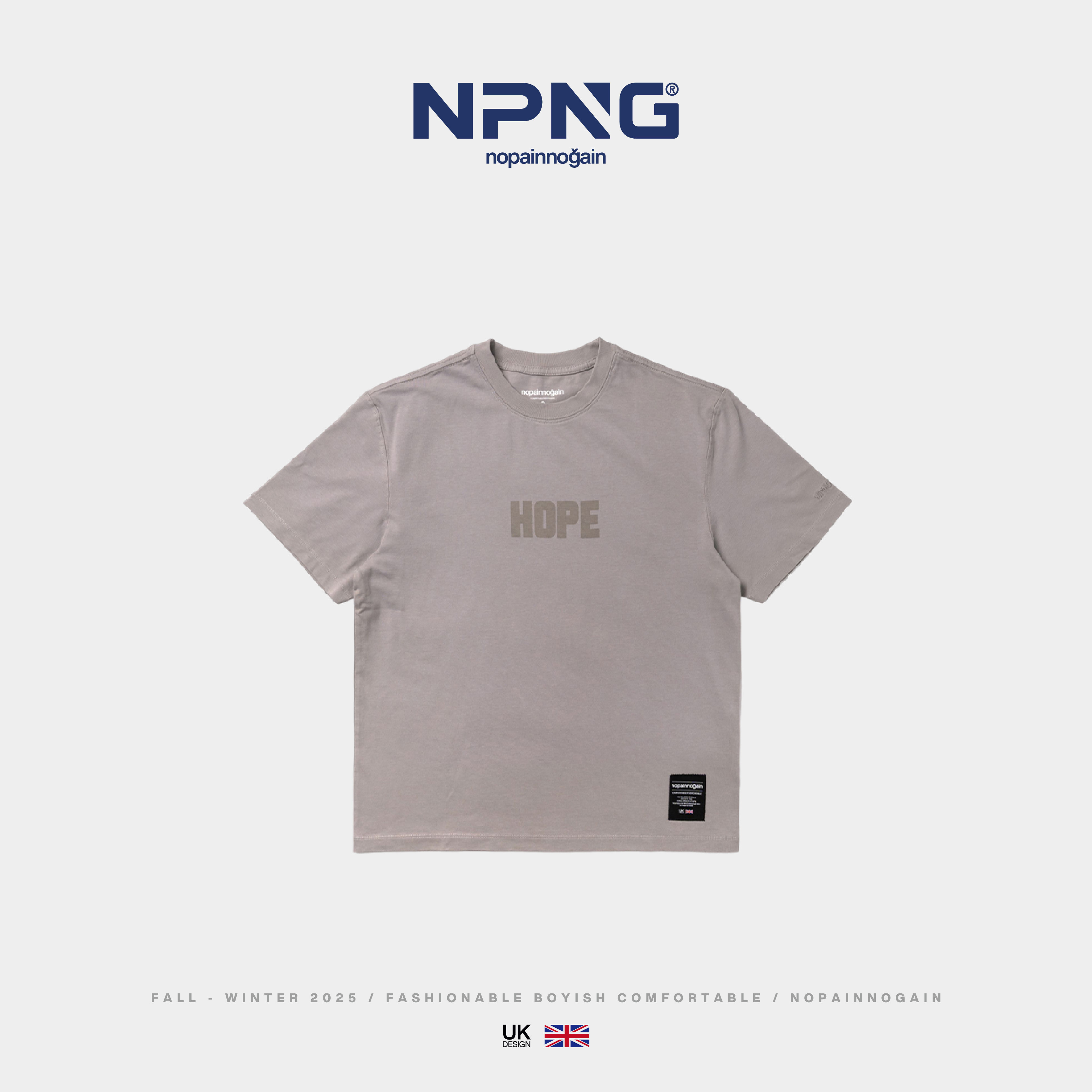 📚 NPNG26新重磅水洗印花短袖T恤男女字母宽松落肩袖浅灰色简约上衣