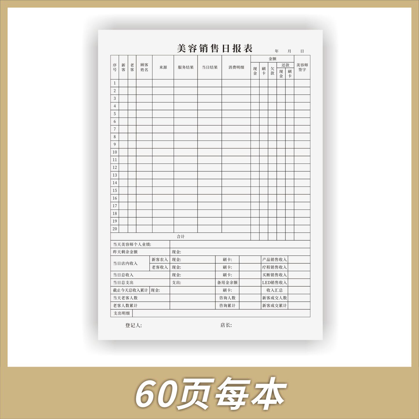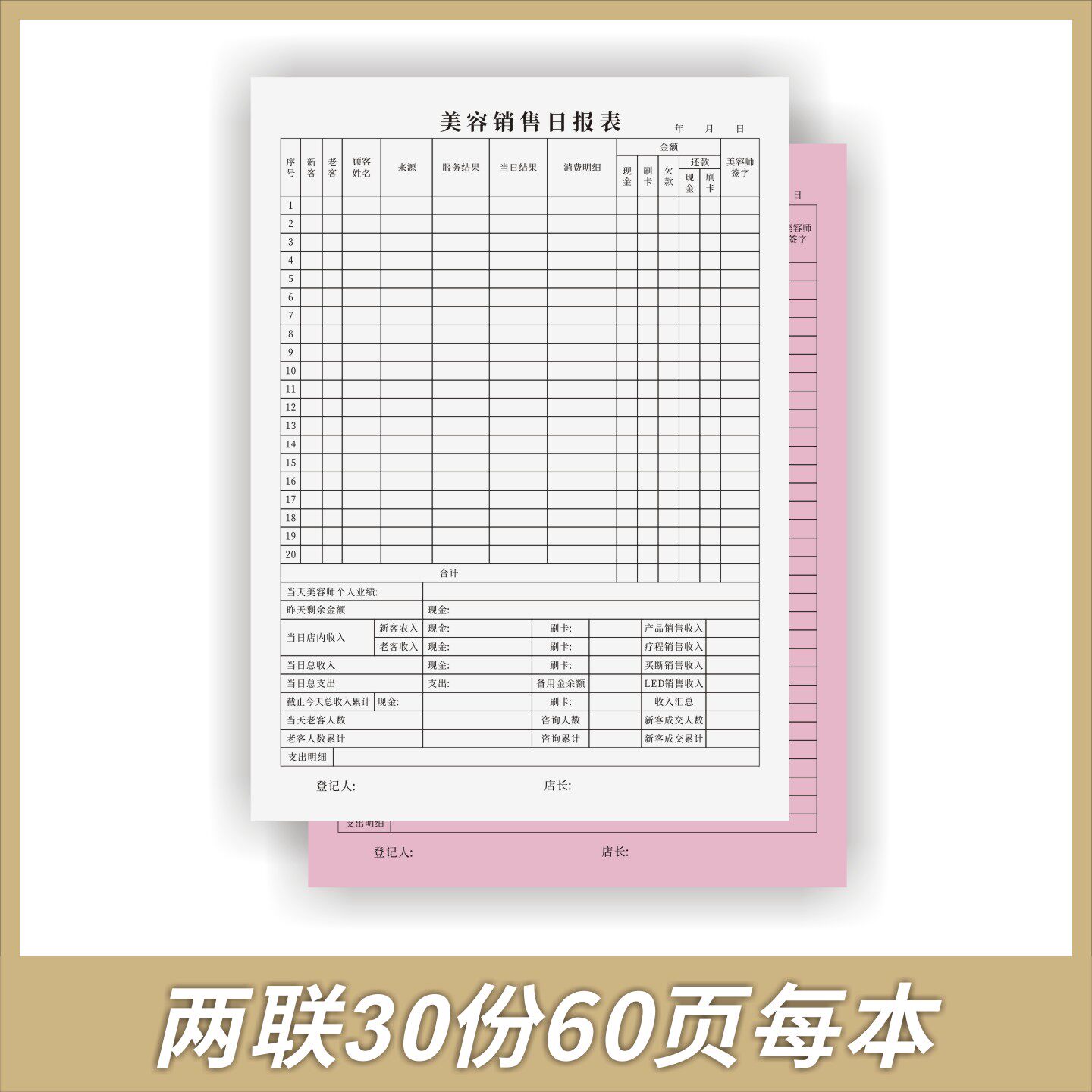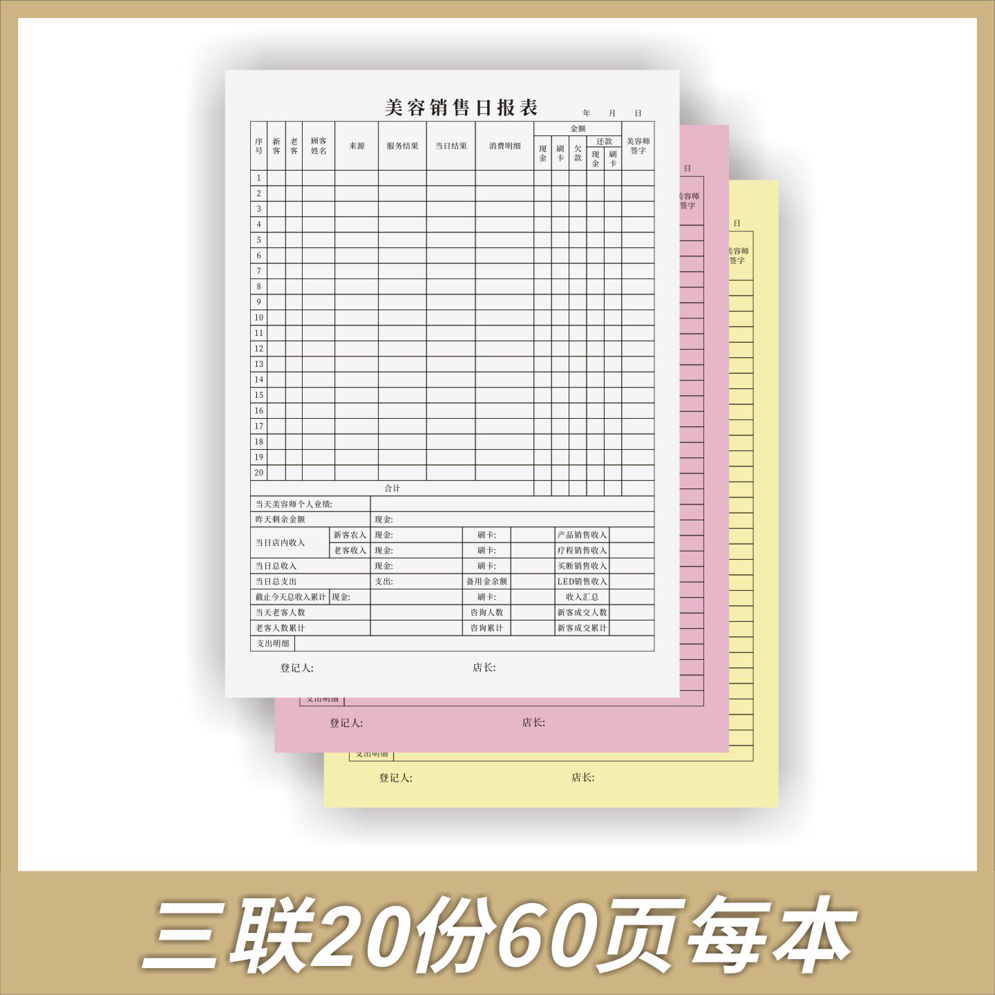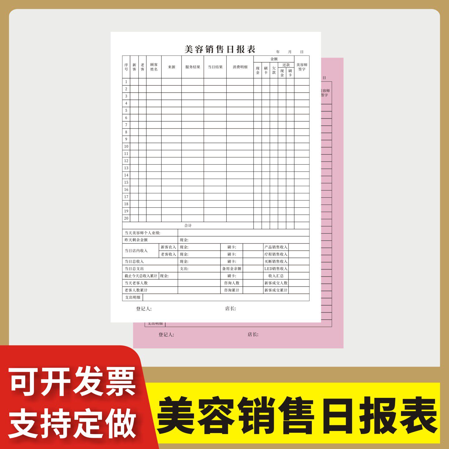 📚 美容销售日报表定制订做单联多联无碳复写通用版美容院销售营业员会员管理开卡业绩统计表美容现金流水日报表