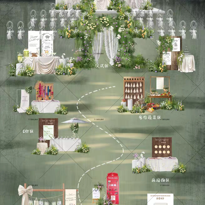 📚 户外草坪婚礼韩式布幔游园会婚礼效果图未分层全景素材PSD