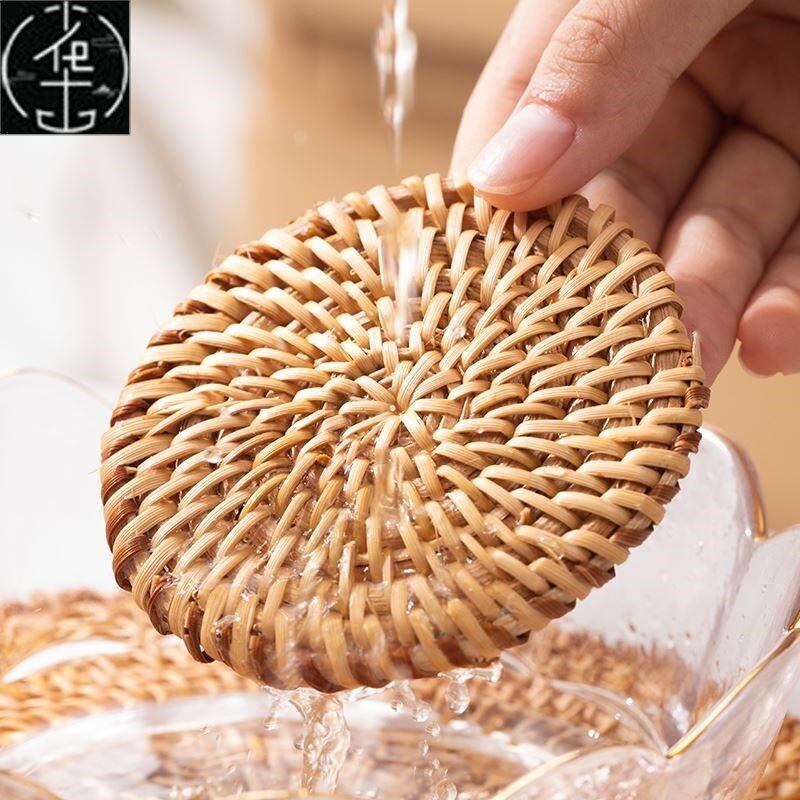 📚 Weaving water hyacinth straw woven round mat dining table he