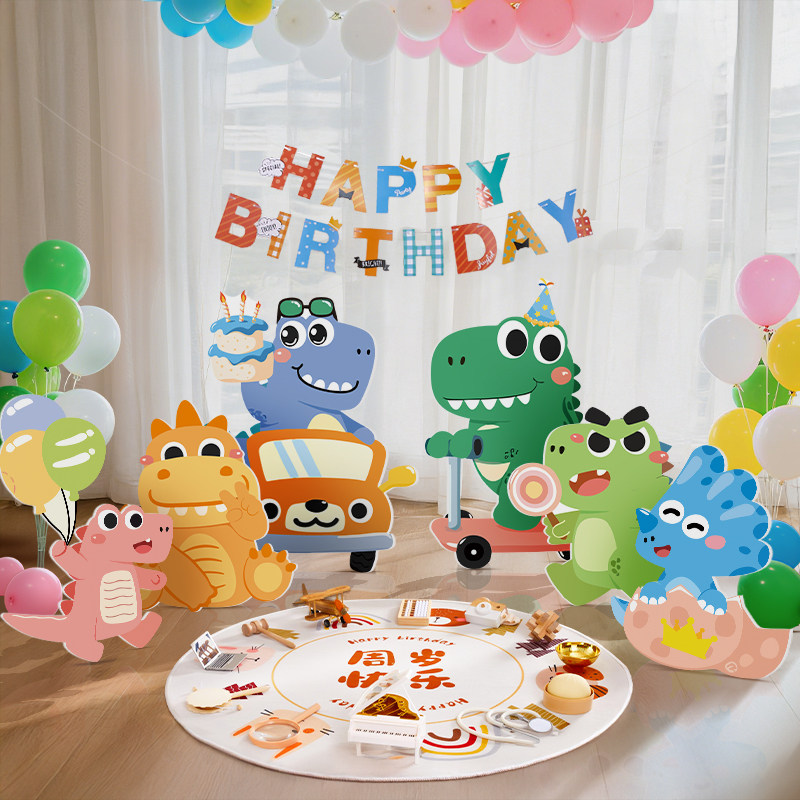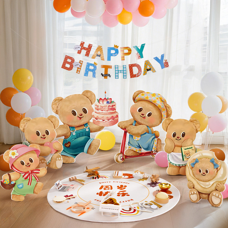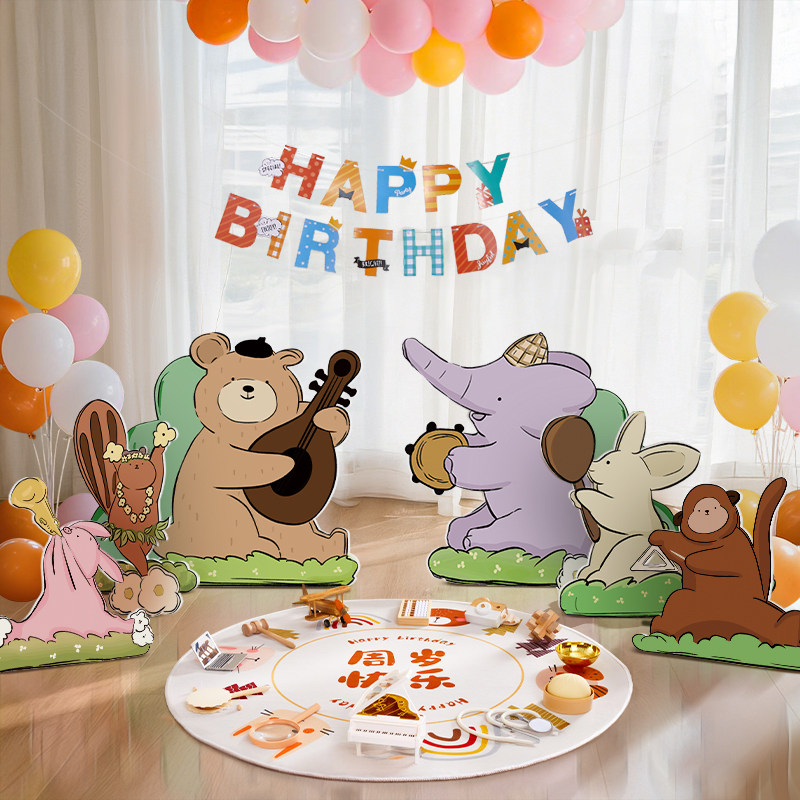 📚 宝宝周岁生日布置场景装饰抓周礼仪氛围感动物拍照道具kt板背景墙