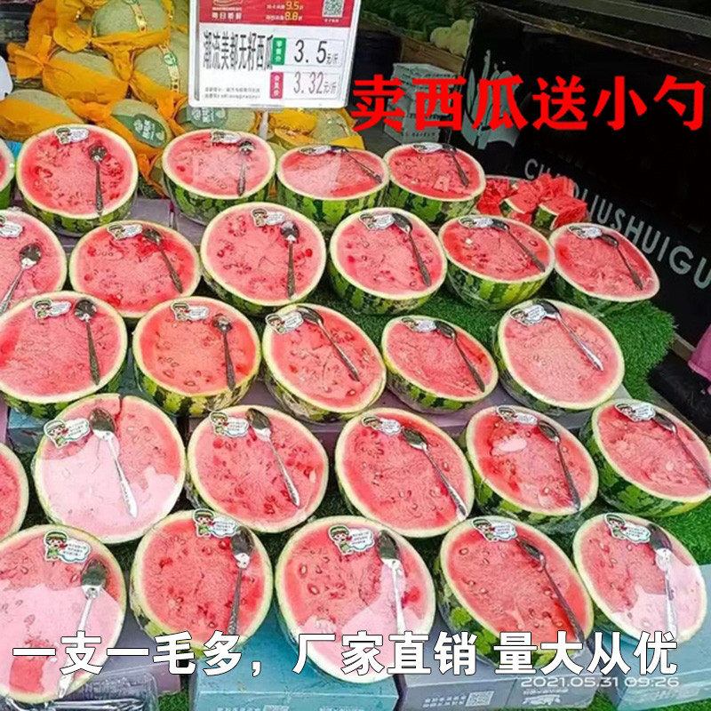 📚 不锈钢小勺子商用挖西瓜薄勺长柄铁勺子外卖一次性赠品勺西瓜勺