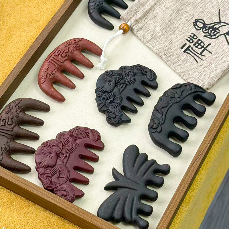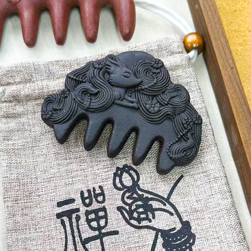 📚 非遗传承手工何首乌中药材头部按摩梳子合香梳经络梳伴手礼物男女