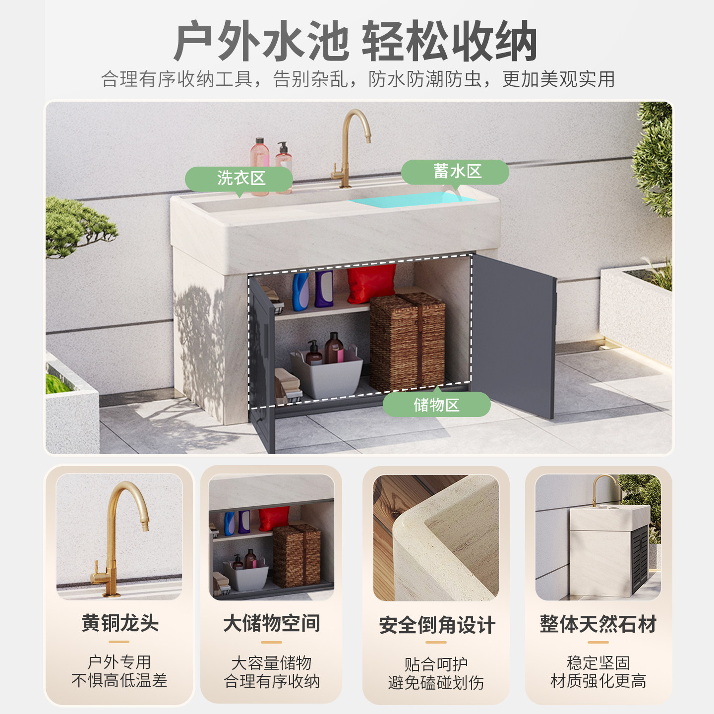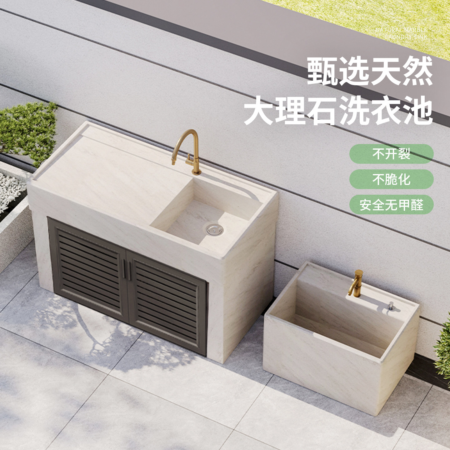 🌳外观设计:这款洗衣台采用了大理石材质,外观大气典雅,与庭院环境完美融合。阳台盆的设计更是让人眼前一亮,不仅实用,还增添了几分艺术气息。